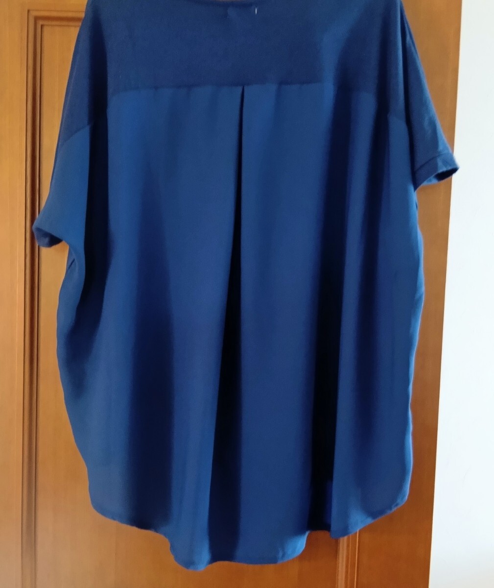 表はスッキリしたTシャツ素材、背中はシフォン素材で切り替えが入っていてふんわりとしたシルエットで身体のラインが目立ちにくいです。