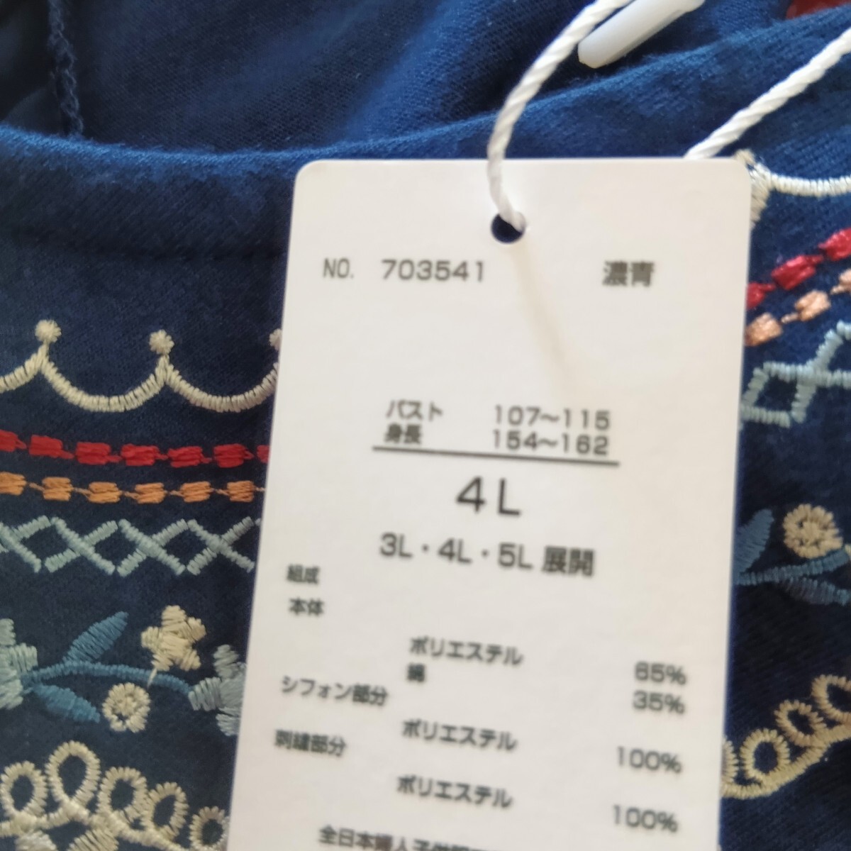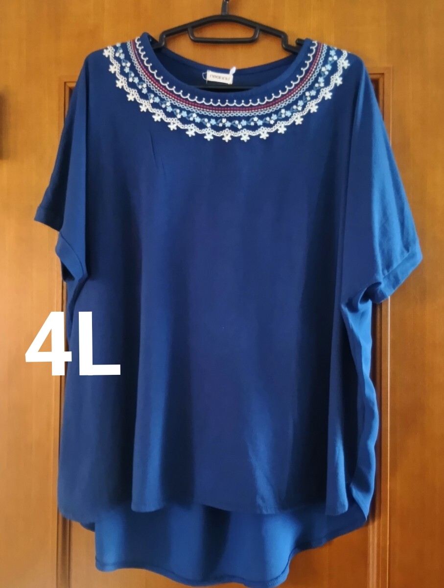 ノアンヌ 衿お花柄レース刺繍 プルオーバー 大きいサイズ noannu 紺 4L