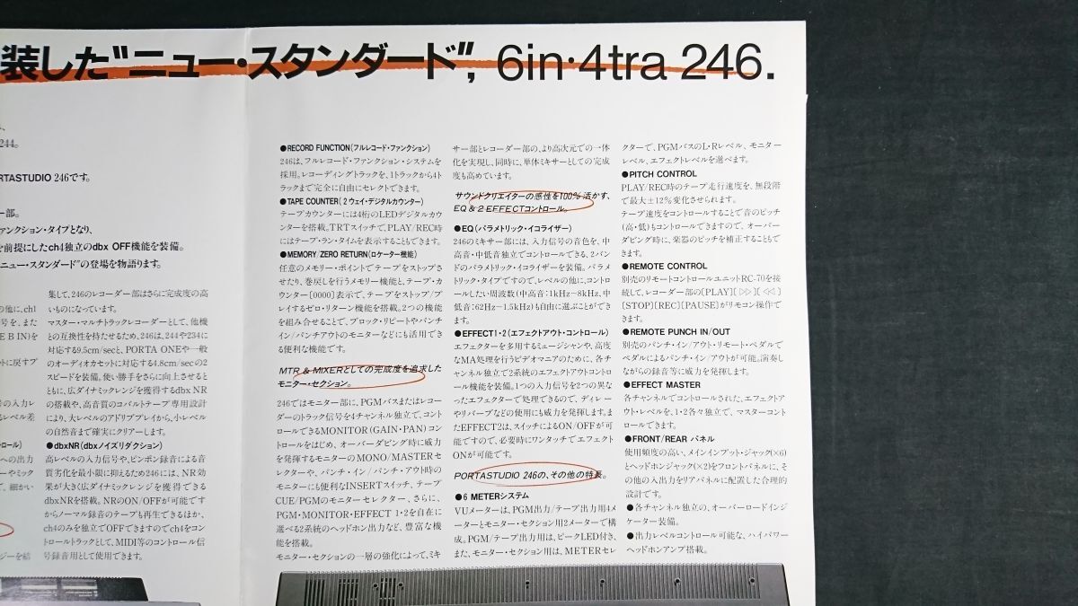 【昭和レトロ】『TASCOM(タスカム)6 Channel mixer & 4 Channel Multitrack Recorder(マルチトラックレコーダー) PORTASTUDIO 246 カタログ 1985年6月』ティアック株式会社 | |
