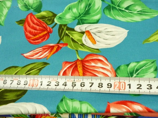 100*50★ブルー・花・南国柄の・ハギレ・生地・布★0508-6