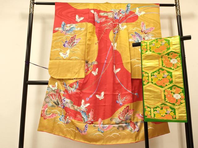 【祝着】 身丈 130cm(肩から) 裄丈 50.5cm(肩上げ 3.5cm) 袖丈 74.5cm 縫込み 2cm 袖幅 33cm 前幅 18.5cm 後幅 25.5cm 着物縫いこみ 内揚げ 0cm (腰上げ 0cm) 裄 お袖側 約2cm 身頃側 約1cm 【帯】 長さ 398cm 幅27cm程 《 サイズについてはこちら 》 |
