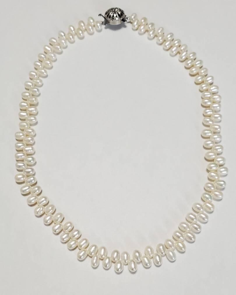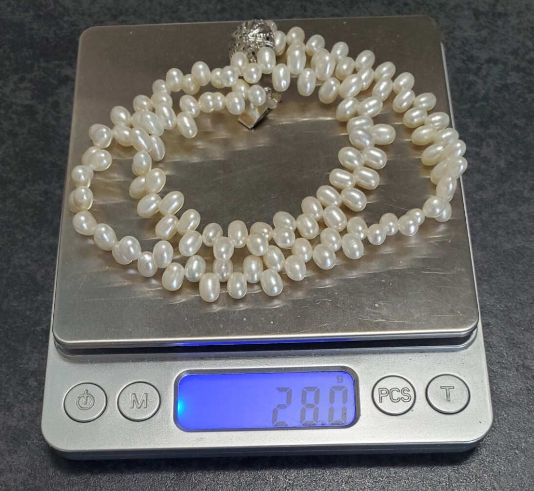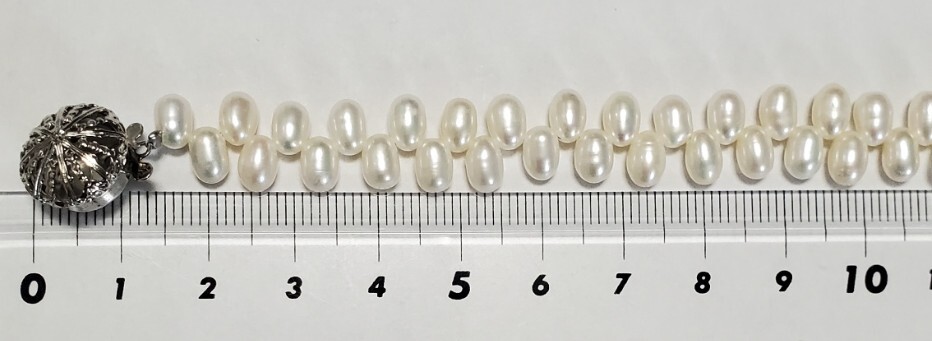 本真珠 パール ネックレス パール幅4.3mm-4.7mm 重さ28.0g 長さ43cm ホワイト ライス型 レディース アクセサリー 美品