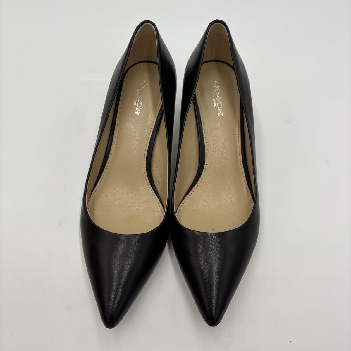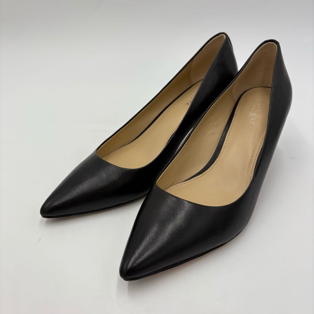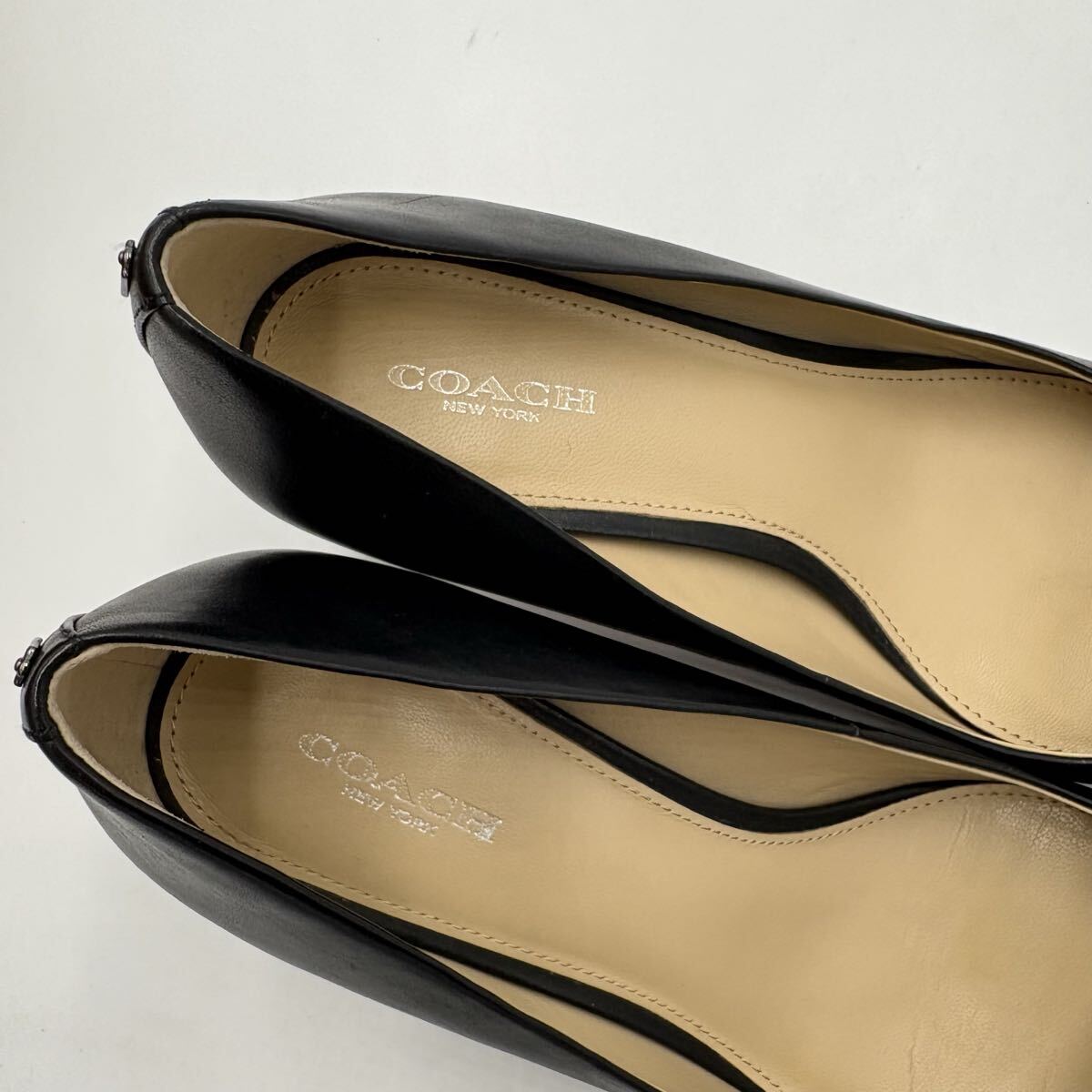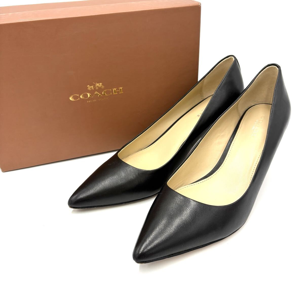 ■ 箱付き '高級感溢れる' COACH コーチ LACEY 本革 LEATHER ポインテッドトゥ ヒール パンプス 24.5cm レディース 婦人靴 シューズ 黒系