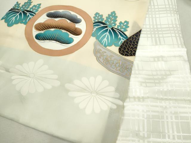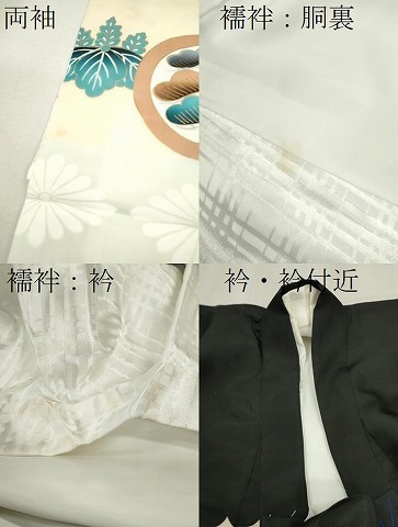 産着【表地:正絹・胴裏:アセテート、襦袢:アセテート・五つ紋】 の状態は接写画像のように両袖・紐・衿・衿付近・襦袢の衿・胴裏に薄い汚れがございますが その他特に目立ったシミ汚れなどもなく大変良い状態です。 大変上質な逸品になります。 お安く出品致しますので、是非この機会にいかがでしょうか? |
