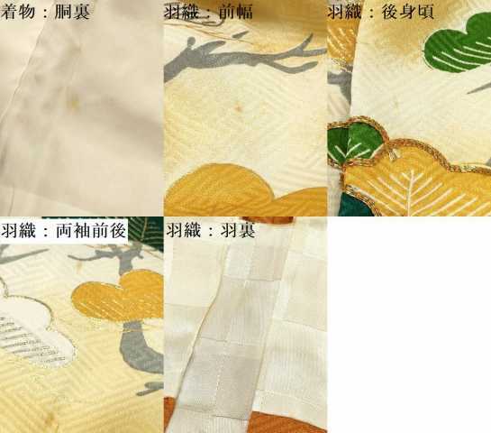 着物【正絹】の状態は接写画像のように胴裏に薄い汚れがございますが その他表地は特に目立ったシミ汚れなどもなく大変良い状態です。 羽織【正絹・石持五つ紋】の状態は接写画像のように 前幅・後身頃・両袖前後・羽裏に薄い汚れがございますが その他特に目立ったシミ汚れなどもなく大変良い状態です。 大変上質な逸品になります。 お安く出品致しますので、是非この機会にいかがでしょうか? ※襦袢・袴・帯は付属されておりません。 |