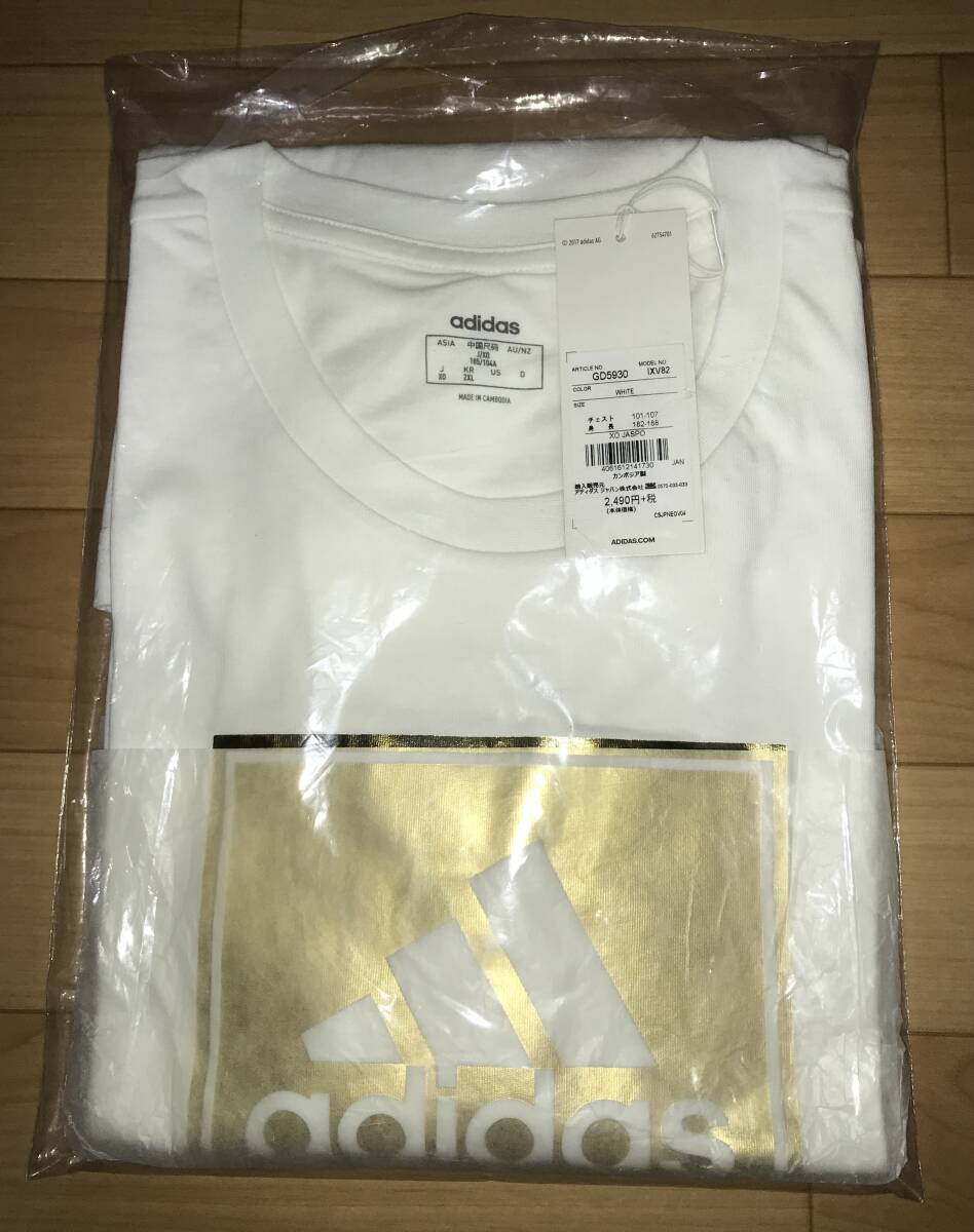 【新品タグ付レア】adidas アディダス 金ロゴTシャツ (ホワイト) GD5930 サイズ:XO