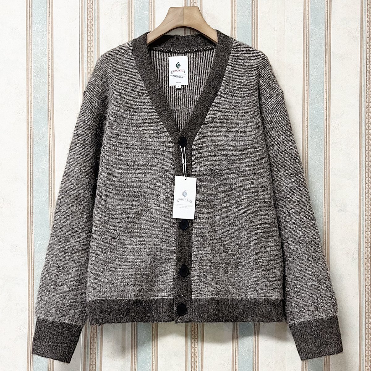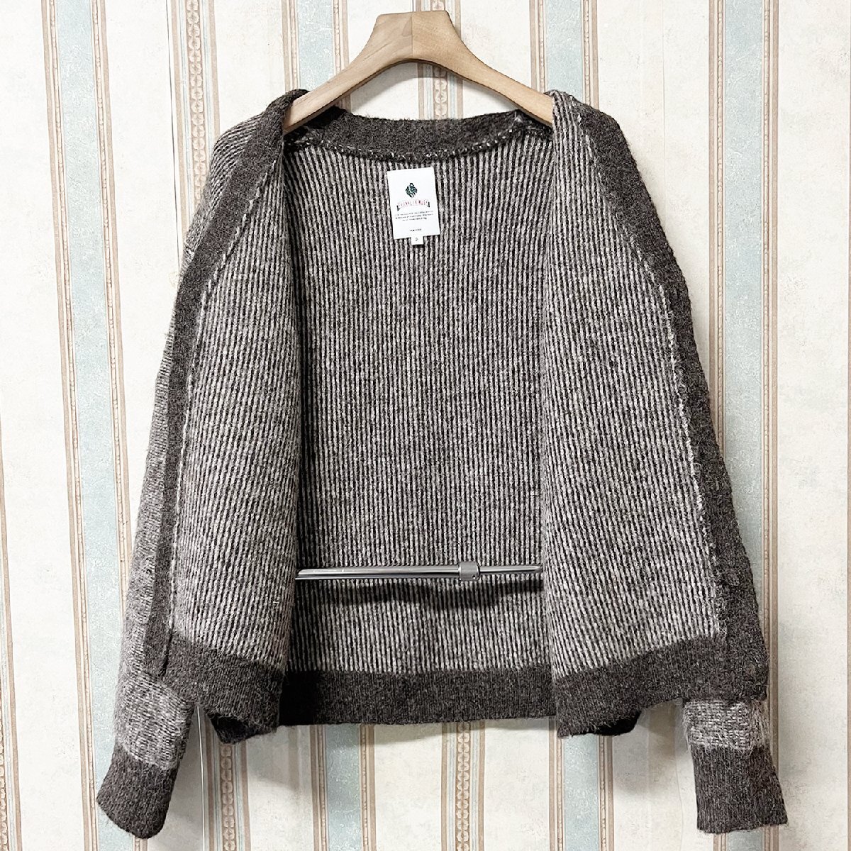 個性 定価5万 FRANKLIN MUSK・アメリカ・ニューヨーク発 カーディガン ウール混 ニット 柔らか 切り替え Vネック セーター アウター 通勤 サイズ1
