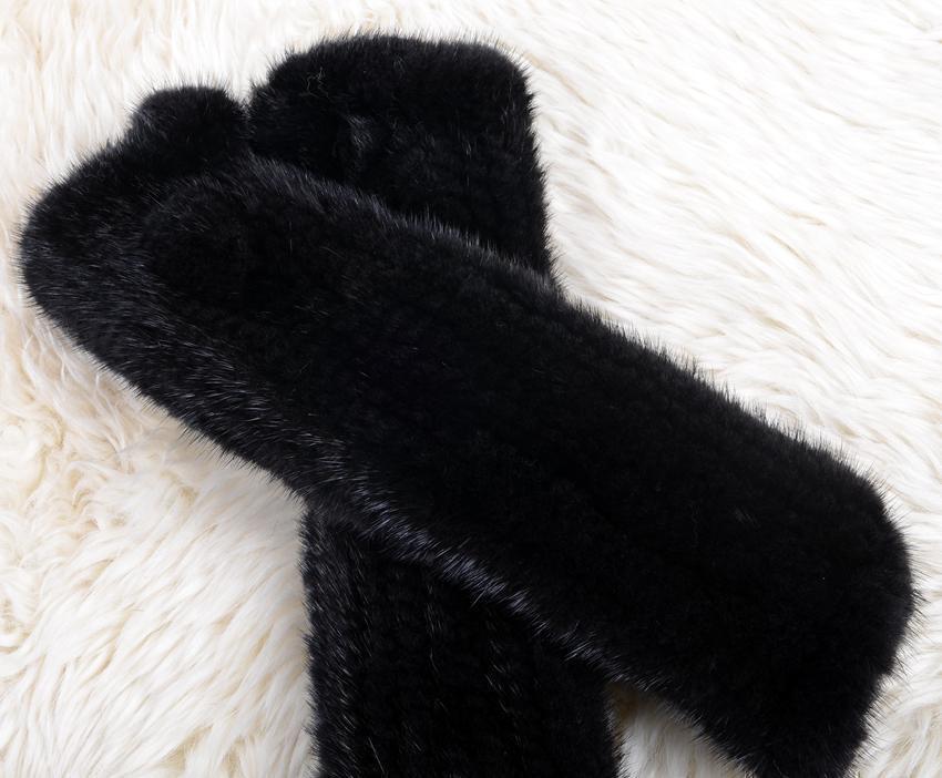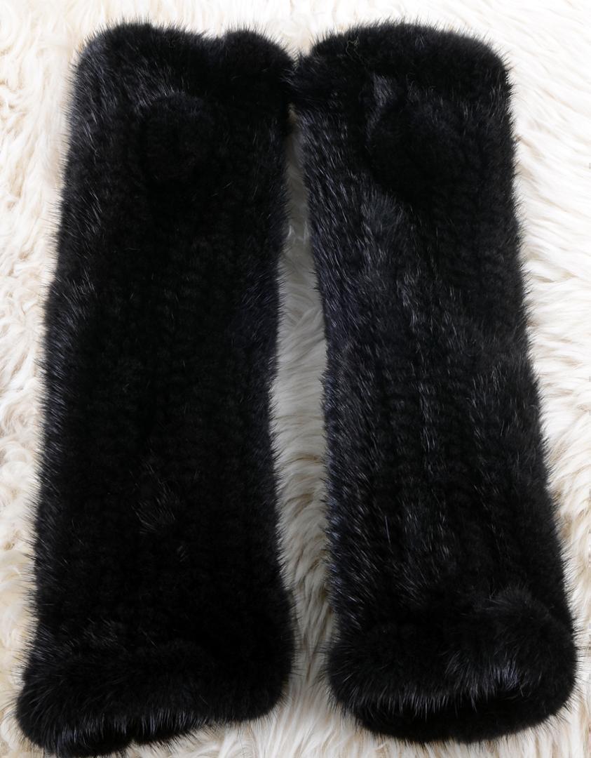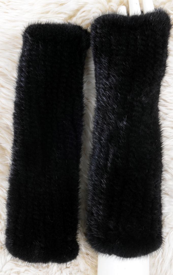 【毛皮の宝石 】上質ミンク編込み アームウォーマー 黒 全長30cm/毛皮ファー | |||