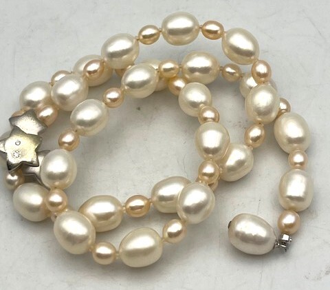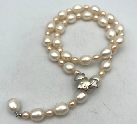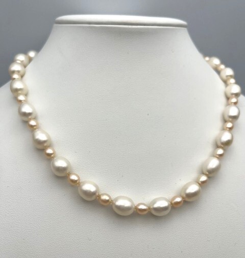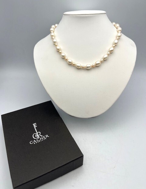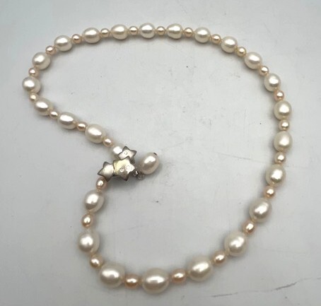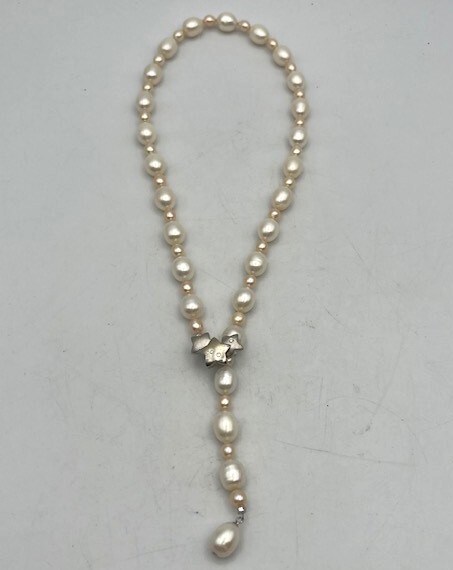 【商品の説明】 留金はフック式で、どこの部分にも引っ掛けられます。 留金部分はシルバー金具になります。ダイヤモンド0.05付です。 全長:48㎝ 重さ:42.4g ※状態は画像をご参照ください。 |