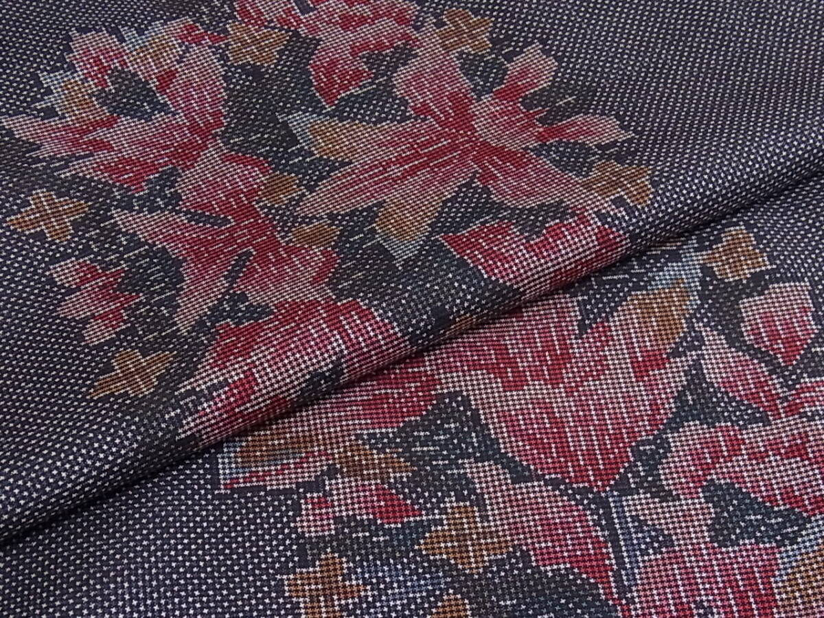着物おきな2★未使用品 本場大島紬 7マルキ 泥染 花丸文 正絹★r2704