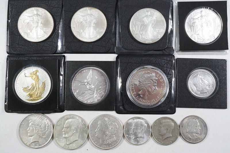 1円~【J97】外国銀貨まとめて14枚 アメリカ モルガンダラー コロンビアン博覧会 イギリス ブリタニア銀貨 メキシコ リベルタ―ド銀貨 他 H