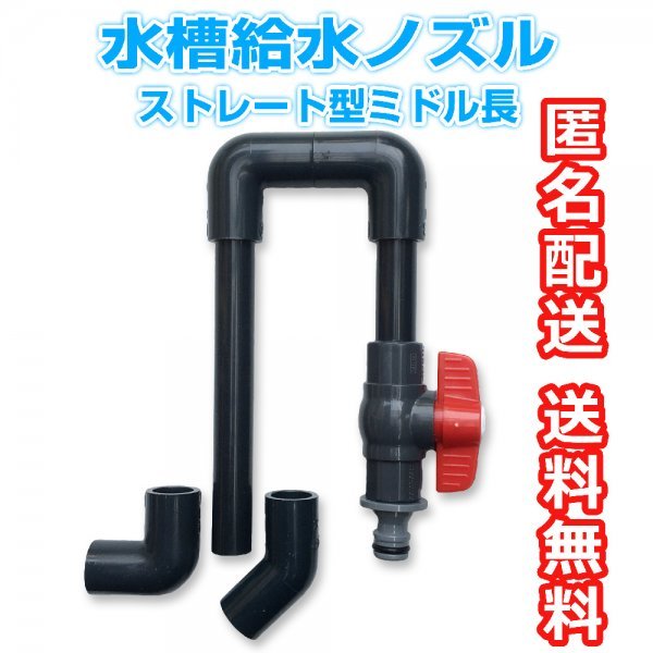 水槽給水ノズル【ストレート型ミドルタイプ】 吐水口2種付 水槽にしっかり掛けられます 水換え 熱帯魚 海水魚 メダカ 金魚【五色アクア】