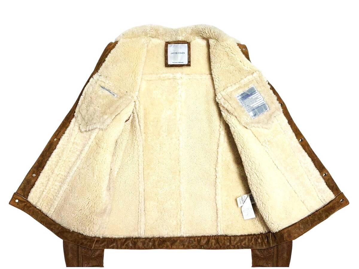 商品説明 | 【商品】 贅の極! 32.2万 極美品 伊製 JACOB COHEN ヤコブコーエン ヴィンテージ加工 極上リアルムートンジャケット 56/3L 羊革 トラッカー ブルゾン 【商品説明】 JACOB COHEN(ヤコブコーエン)のヴィンテージク加工 極上リアルムートン トラッカージャケットになります。 定価:322,300円、コロネット株式会社の代理店タグが付属する国内正規品になります。 1985年に創業されたキング・オブ・イタリアンデニムブランド「JACOB COHEN/ヤコブコーエン」。 仕立ての良いテーラードジャケットに合わせるジーンズとして作られた、その美しいシルエットは毎シーズン新しいコレクションを発表するたびに世界中のファンを魅了し続けています。 ハイクオリティなプレミアムデニムやクラシックなプリントTシャツなどのアイテムを展開している。 そんな≪JACOB COHEN-ヤコブコーエン-≫の、ヴィンテージ感漂わせるムートンレザーブルゾンです。 見るからに上質なレザーの質感とヴィンテージ感漂わせるルックスが他のレザーアウターとは一味違うハイクラスな1着。 上質なムートンに大胆に加工を施すことで、ヴィンテージ感と大人の色香漂わせます。 ヴィンテージ加工が施されたイタリア産の最高品質の極上ラムレザー(羊革)が使用され、内側にはふかふかのリアルムートンボアがびっしりと敷き詰められた防寒性抜群の高級感溢れる極上の一着。 ムートンジャケットには珍しいリーバイスの銘品『3rd』タイプのトラッカージャケットデザイン&リアルムートンならではの優れた保温性と高い耐久性を備え、トレンドなどに囚われない力強い凛としたスタイルを実現している高級感のある逸品です。 2枚の革を張り合わせた安価なものではなく、表革と裏革が一枚革となった、高級品の証である「ダブルフェイス」仕様となっています。 イタリア産のムートンのジャケットやコートは、確かな産地ブランドとして、大変高価なアイテムとして市場に出回っており、しっかりとした厚みがあるにもかかわらず、たいへんやわらかく、モチッとした弾力があることが、クオリティの高さを物語っています。 高級ムートンならではの驚くほど柔らかくソフトな肌触りを堪能して頂ける最高級のリアルムートン(羊革)で仕立てられた極上の一着で、レザーアイテム特有の硬さがありませんのでストレス無く着用して頂けます。 ヴィンテージ加工が施されたワイルドで粗らしい表情の表面は、絶妙なアンティーク感がありますが、時間をかけて丁寧になめされているので、廉価なムートンのような硬さはまったくありません。 ヤコブコーエンならではのイタリアらしい無駄を省いた美しいシルエットに仕立てられ、身頃の綺麗なウェストシェイプや立体的で吸い付くようなアームは秀逸。 また、使用しているボタンはデニム等でお馴染みのジュエリー職人が手掛けており、よりラグジュアリー感をプラス。 細部まで拘り抜いた仕上がりは、ハイエンドな大人の男性の休日に持ってこいな佇まいを演出する仕上がり。 現代的にモディファイされたムートンジャケットは、カジュアルでありながらもラグジュアリーで、細くてスタイリッシュ、そのうえ軽くて暖かく、ひと目で高級感が伝わる¨大人が着るに相応しいムートンジャケット¨です。 非常に洗練されたディテールが魅力となったヤコブコーエンならではの完成度の高い大人カジュアルな一着です。 スタイリッシュにもカジュアルにもスタイリングが出来る万能デザイン&シルエットで幅広いコーディネートが楽しめる一着です。 あまりムートンジャケットを着用されない方でも使いやすいデザインです。 フロントは6つボタン開閉、両胸にフラップポケットが2つ、袖口にアジャスターボタンの仕様。 ボタンとリベットにはブランドロゴの刻印があしらわれており、ブランドをしっかりと主張した特徴的なデザインで、存在感のある着こなしを楽しめます。 素材・デザイン・シルエットの全てにこだわり抜かれた、さすがヤコブコーエン!と唸らされるクオリティーの高い仕上がりとなっています。 肌触りも素晴らしいふかふかのリアルムートンの総裏仕立て仕様、リッチ感溢れる素晴らしいムートンジャケットです。 デザイン面は勿論ですが、特筆すべきはその保温性。 内側には袖裏からポケット内までシェアリングされたふかふかと柔らかな最高級のムートンが敷き詰められ、極限の寒さでも体温に包まれているような暖かさを維持します。 高い防風性・防寒性を誇り、どこに行っても上半身は寒さを感じることはありません。 抜群の保温性を誇りながら、美しいシルエットラインを描くその技術力はさすが「ヤコブコーエン」。 デニムスタイルはもちろんスラックスとも好相性で普段のコーディネートにも合わせやすく、1着あると着こなしの幅が広がるのも嬉しいポイント。 リアルムートンによる高級感、洗練されたデザイン性・シルエット・ディティールは一切妥協の無い完成度の高い仕