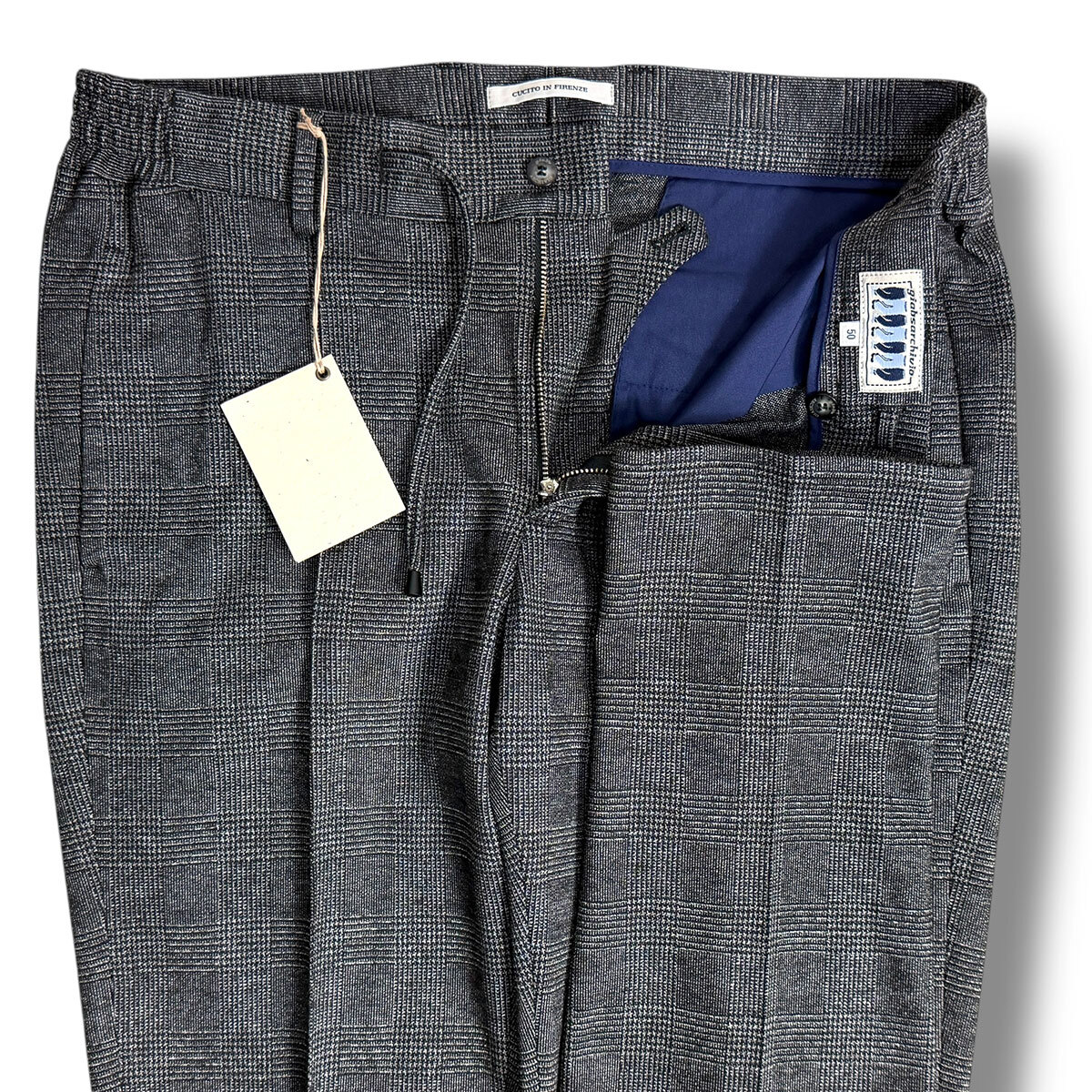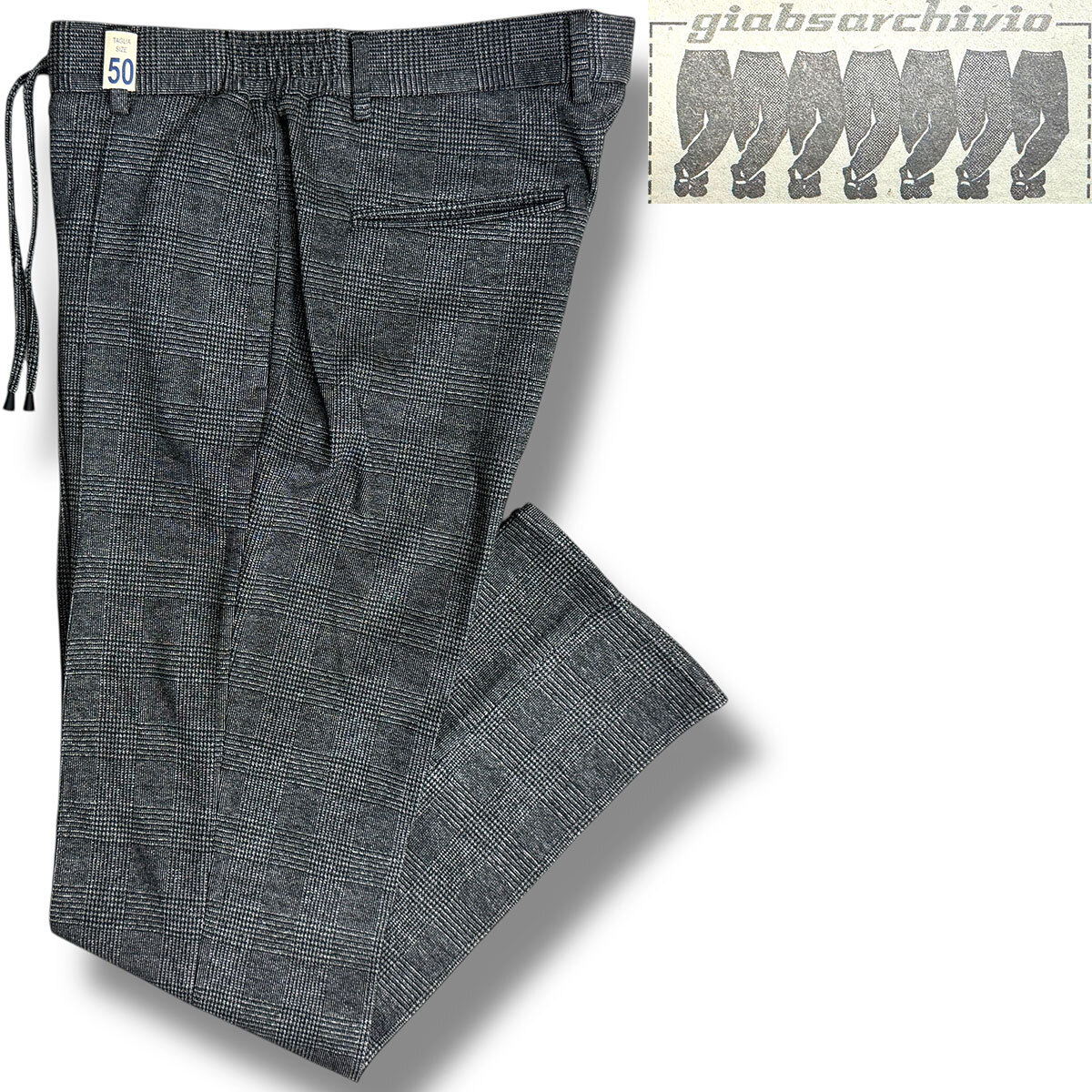 J7130 新品 ジャブスアルキヴィオ 23AW MASACCIO マサッチョ グレンチェックジャージー 永久クリースリラックスパンツ チャコールグレー 50