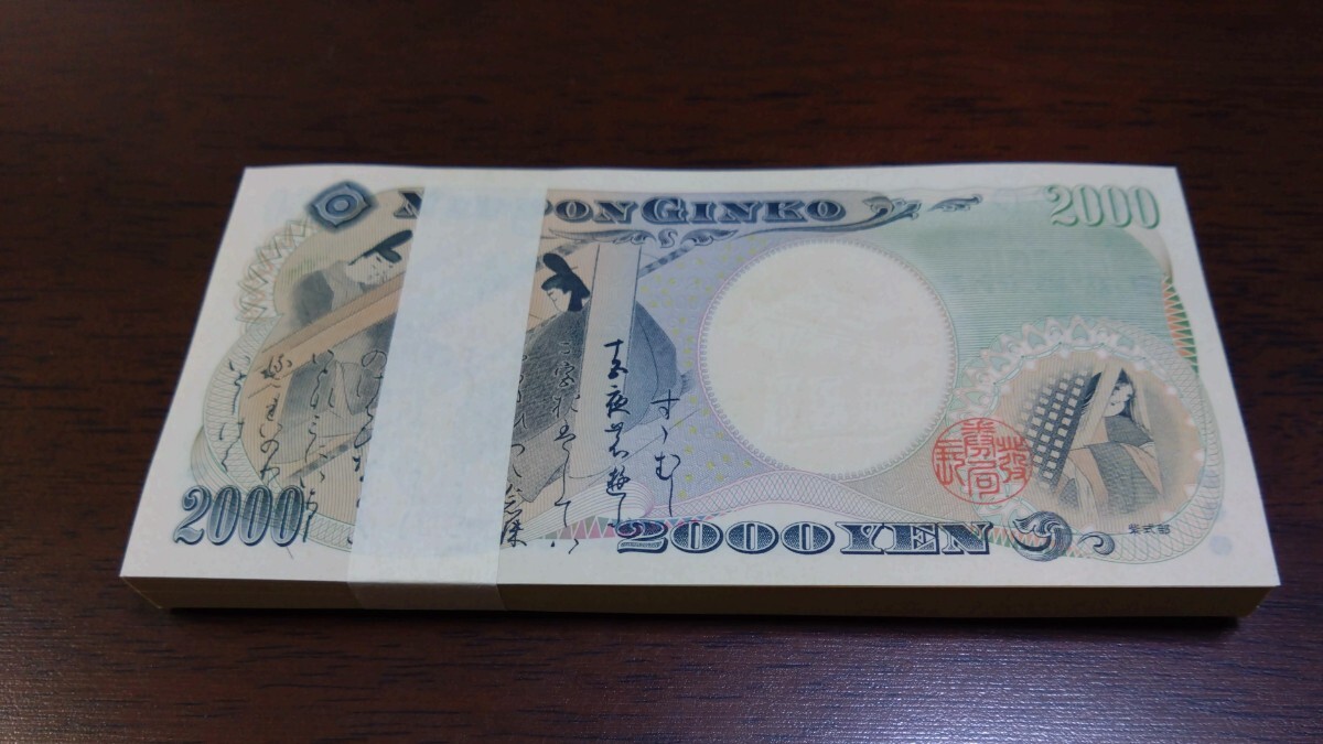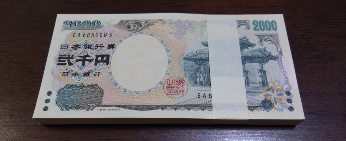 日本銀行券D号2,000円 守礼門2,000円で、シミ、やけ、折り目のない貴重なピン札です。