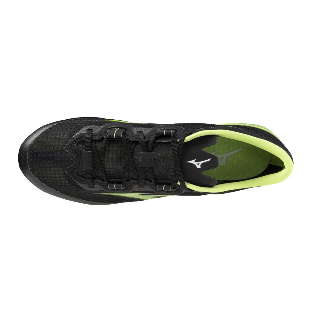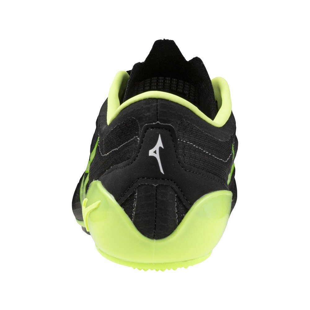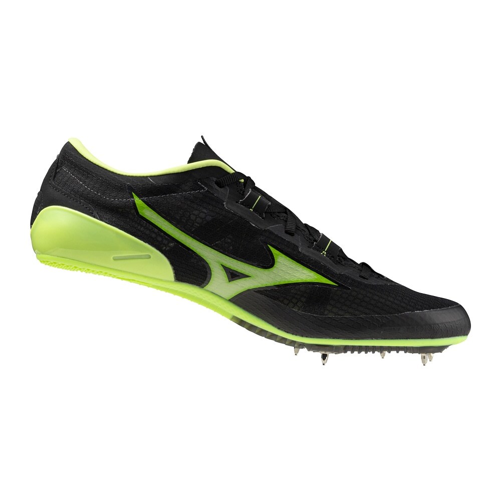 レーザー光線のようなコーナーリングを。ロングスプリント向け。</br<<br>品番:U1GA230312<br>カラー:ブラック×グリーン<br>サイズ:26.5cm<br>甲材:合成繊維×人工皮革<br>底材:合成底<br>約160g(このスパイクの27.0cmサイズの片方の重さ)<br>オールウェザートラック専用/短距離用<br>スパイクピン:取替式:8ZA303(8mm)<br>2E相当
