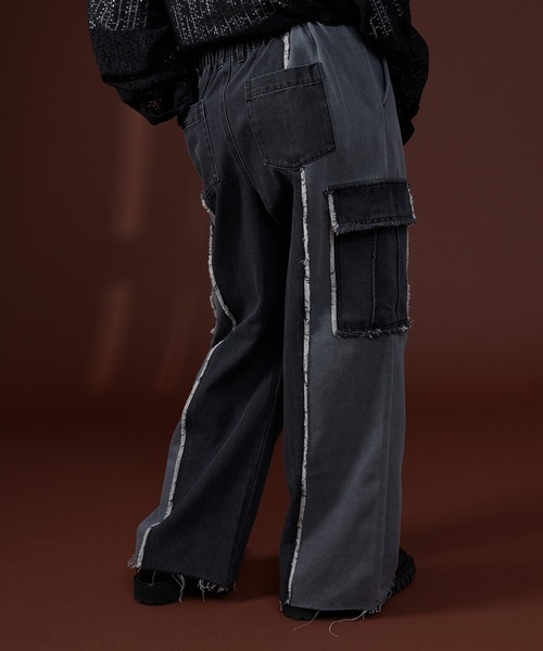 参考商品名:FRINGE BICOLOR DENIM CARGO PANTS / フリンジバイカラーデニムカーゴパンツ