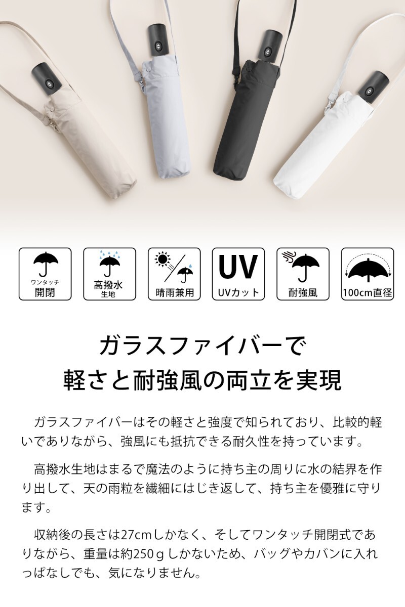 【ガラスファイバー制の親骨】ガラスファイパー製の親骨を持つこの折りたたみ傘 は、軽量でありながら丈夫です。突然の天気の変化は楽に対応できます。都市の忙しい日常や旅行中、どこでも頼りになる頼もしいパートナー。軽さと耐久性、両方のメリットを持っているこのガラスファイ パー製の親骨を採用した折りたたみ傘は心地よい使用感で、日常生活をより快適に、より確実にサポートします。