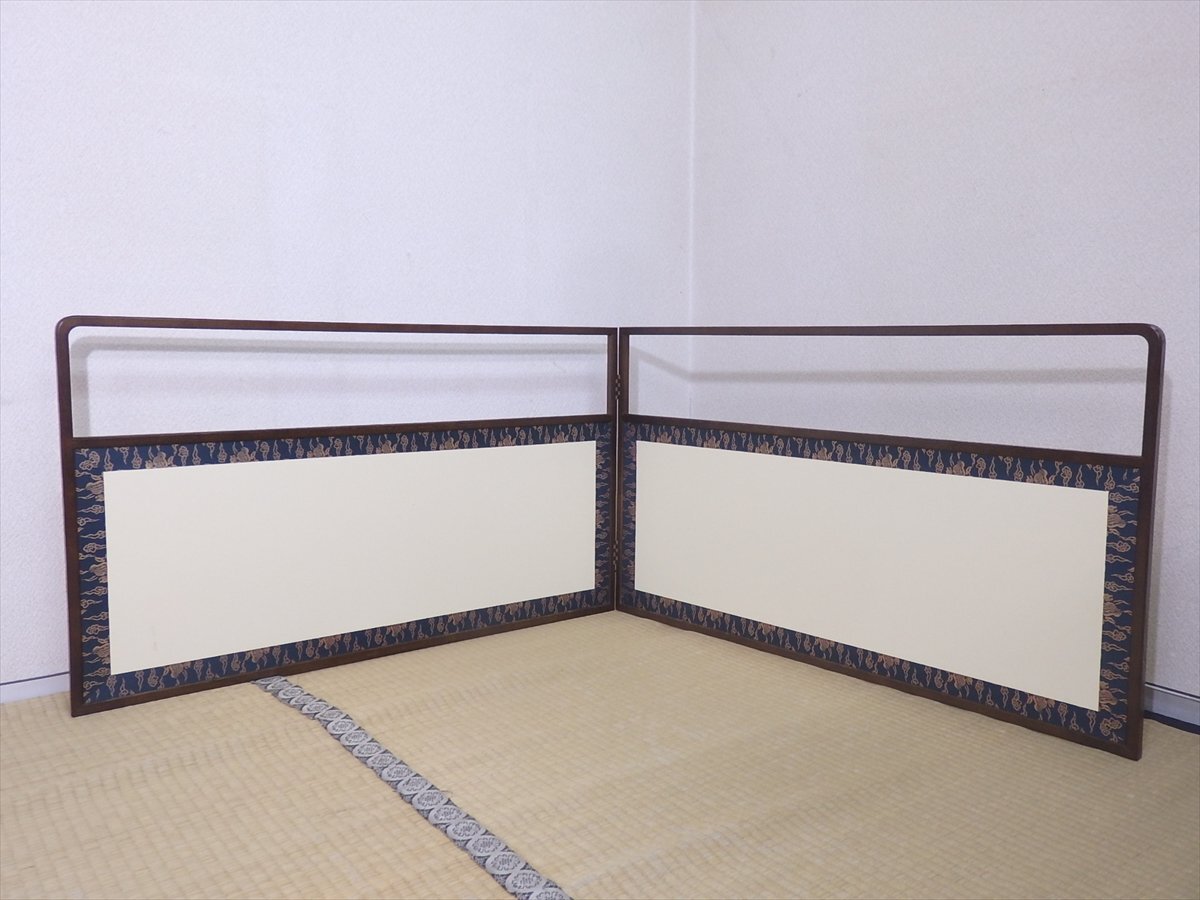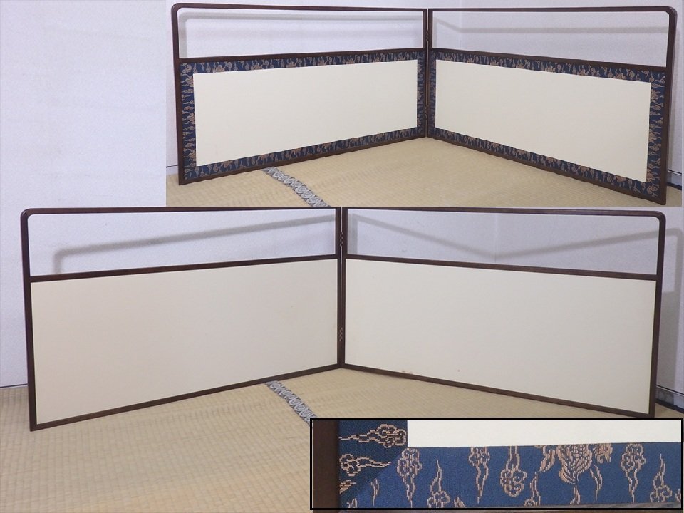 ★雲鵬(紺)【風炉先屏風 紙箱入り】仕上げ色(桑) 裏は無地 幅94cmが二面 高さ55cm 茶道具 家具 セール!