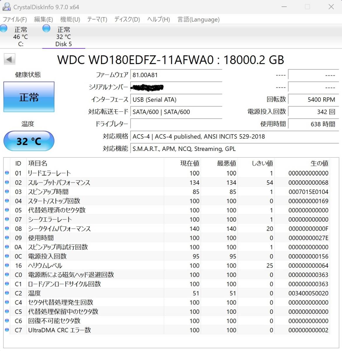 ウエスタンデジタル 18TB USB3.0 WD Elements Desktop 外付けハードディスク② ☆使用時間少☆