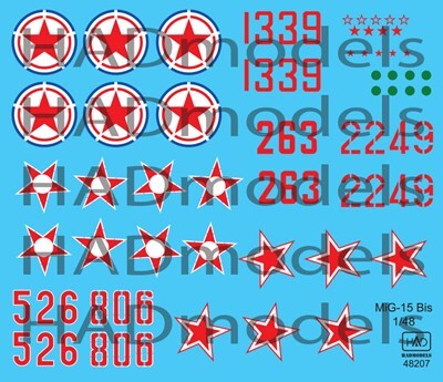 HAD Models 48207 1/48 MiG-15 Bis (North Corea, Soviet, Hungarian) decal sheet