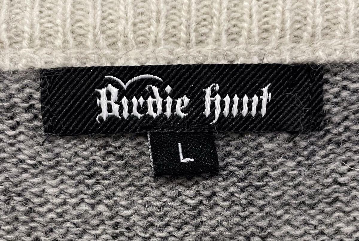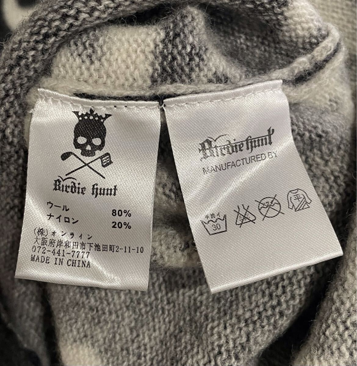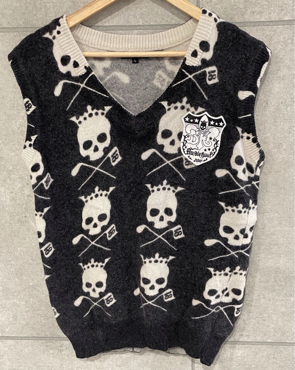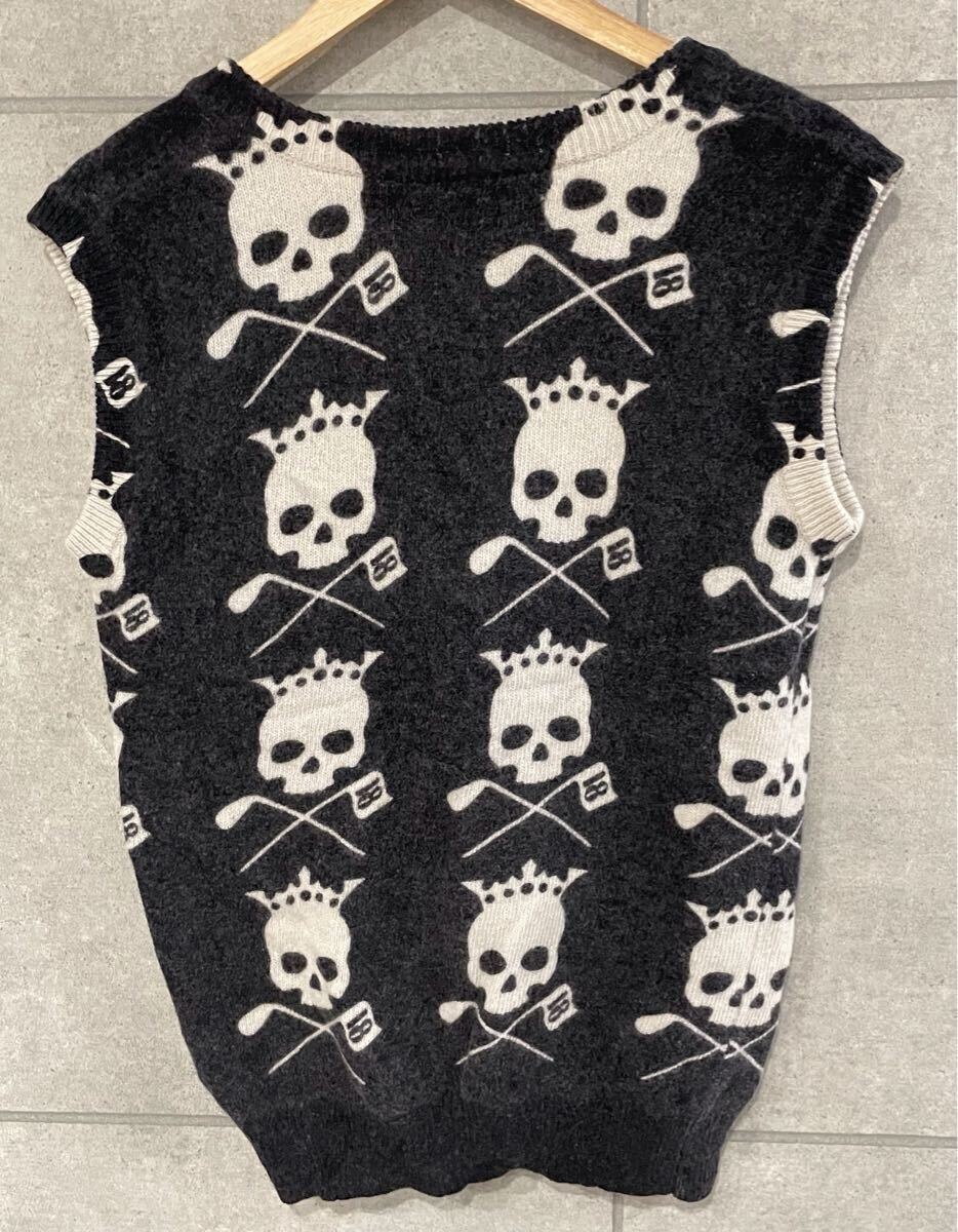 希少デザイン! BIRDIE HUNT バーディハント ウール混 ニットベスト Vネック スカル総柄 ブラック系 Lサイズ ゴルフウェア ○ 新規×