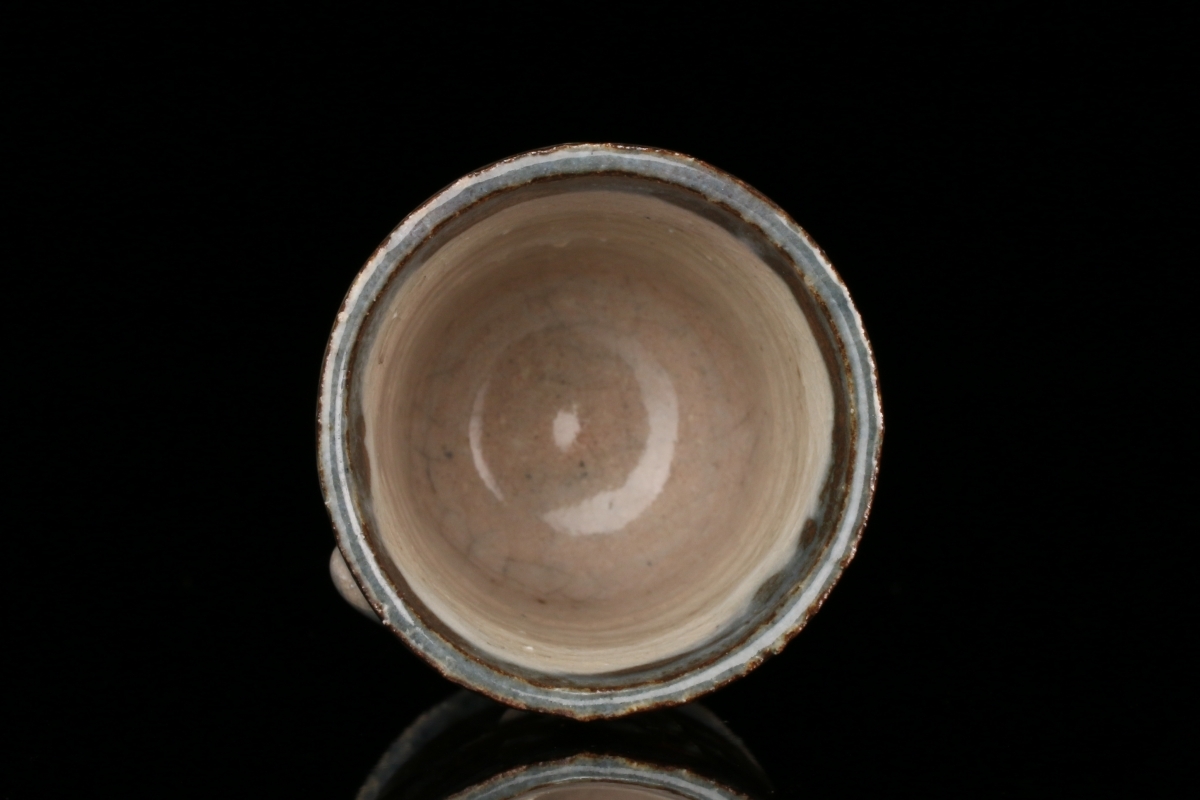民芸陶器らしい形姿と発色のよい呉洲に、作者独自の感性により創造された泥描で表された文様の合わさりから生まれた、民藝の巨匠と呼ばれるにふさわしい ”真民芸”の盃です。
