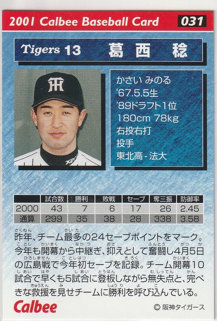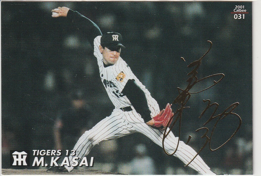 ●2001カルビー【葛西 稔】プレ版:金箔押サインパラレル No.031:阪神