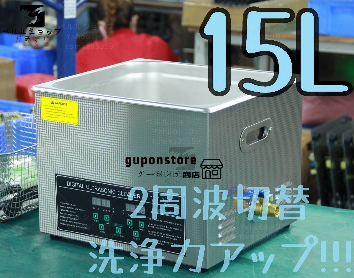 2周波で洗浄力 強力アップ◆ 超音波洗浄器 デュアルタイプ 15L 業務用 排水ホース付き 安心の1年保証付きです