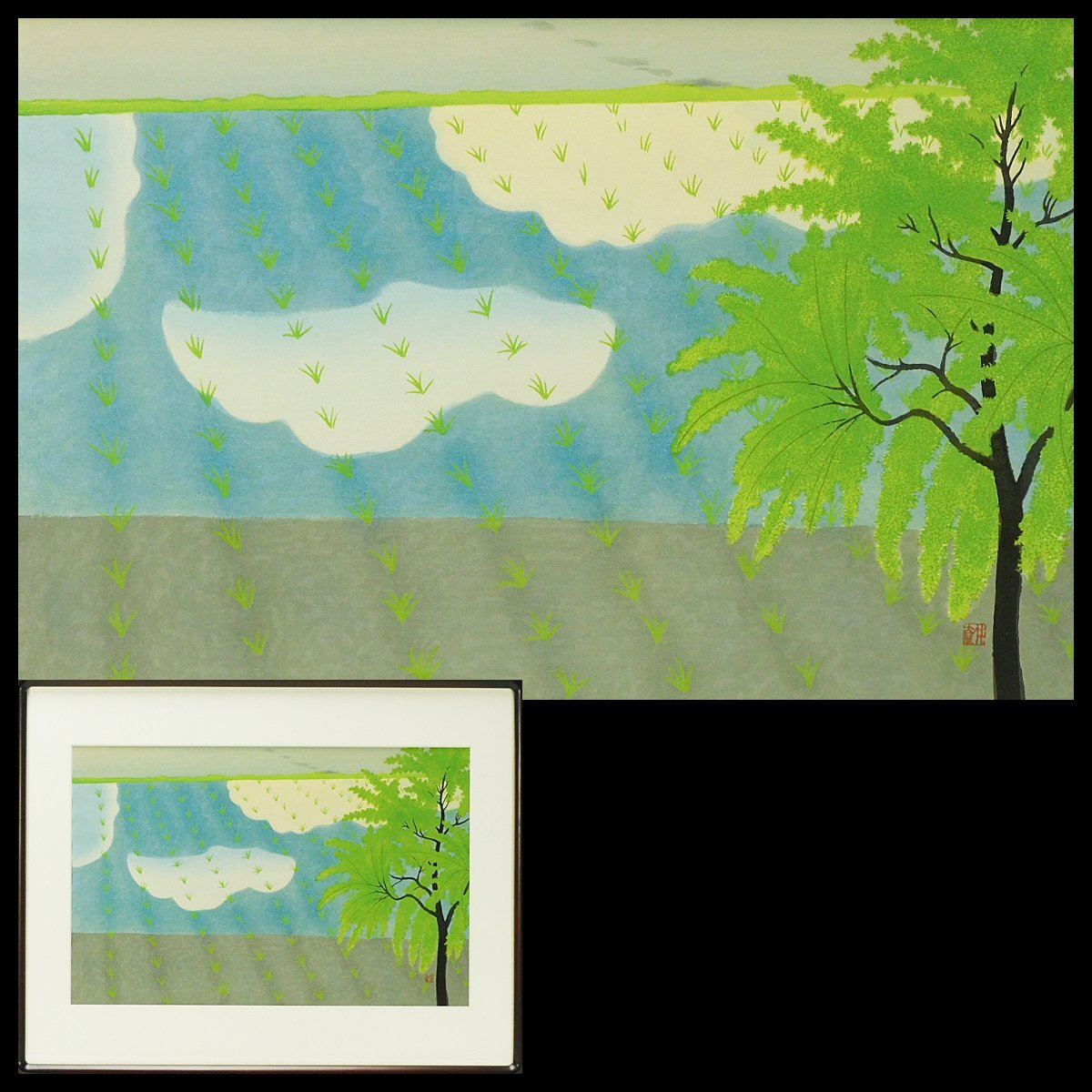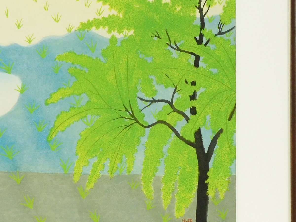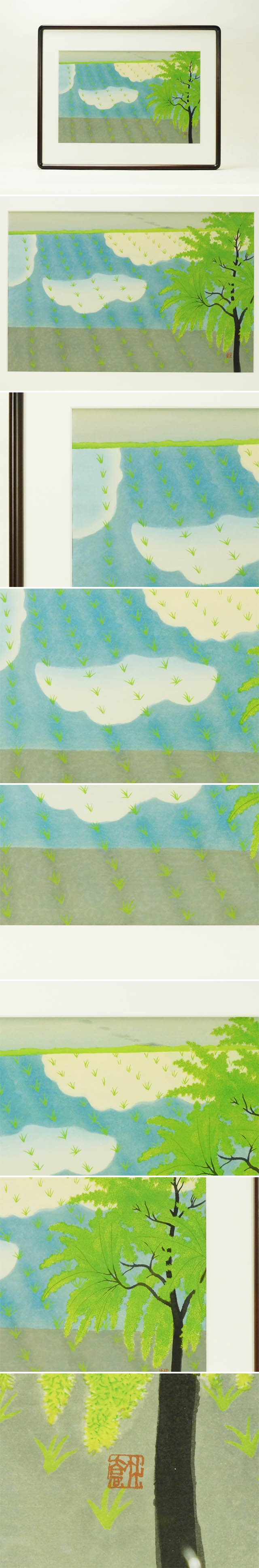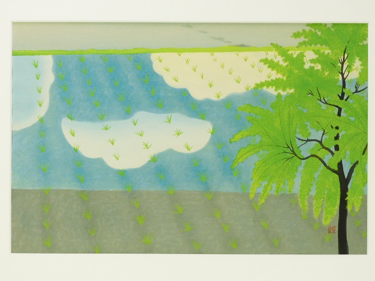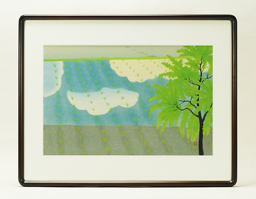 小野竹喬 奥の細道 句抄絵 田一枚植えて立ち去る柳かな 木版画 額装 専用箱 師竹内栖鳳 文化功労者 文化勲章受章 s25090403