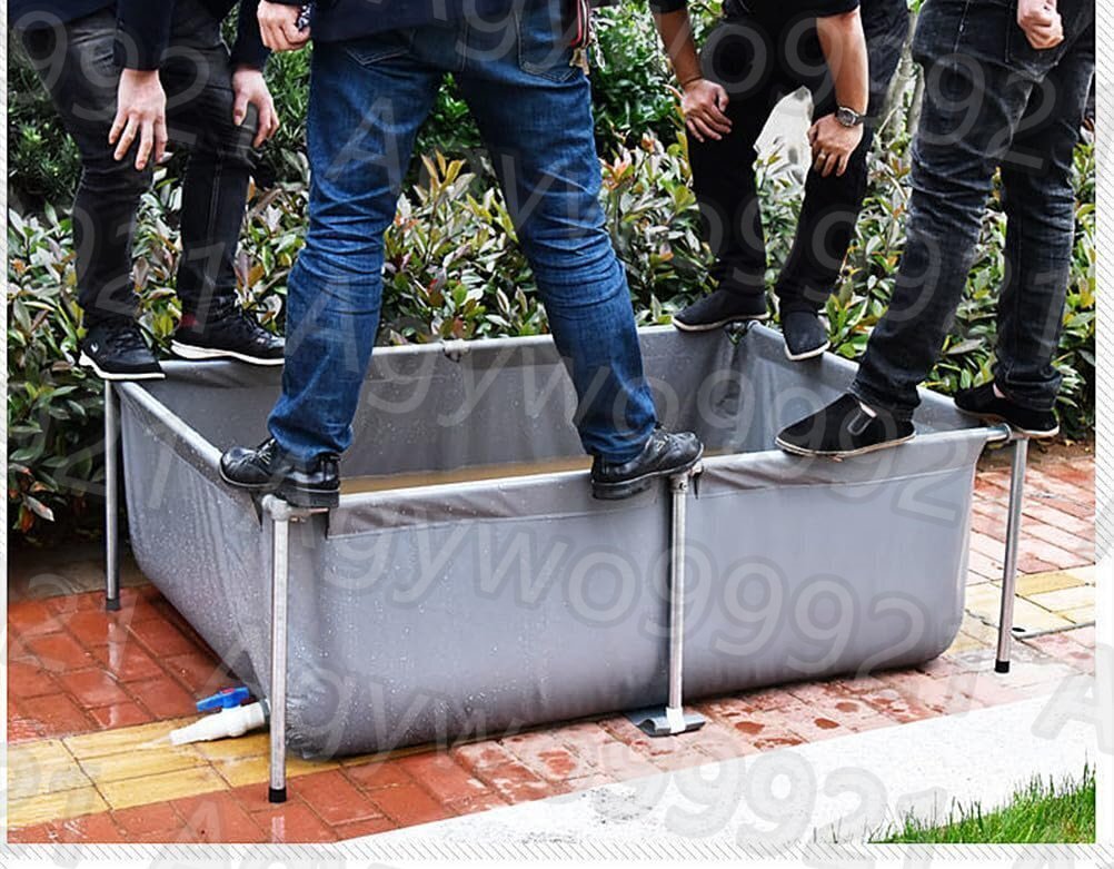 厚みのあるキャンバスの魚のいる池 長方形プール アップグレード 大型水槽 (3*1*0.7m)折りたたみ式ペット犬パドリング プール ブラケット付き 庭の灌漑、水貯蔵、防火のための大型養殖プール 水を貯めやすい 安全性 魚のいる池