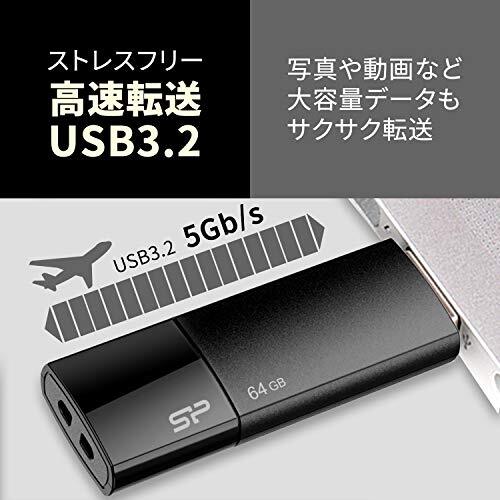 ・ブラック/スライド式 64GB SP064GBUF3B05V1K・・Size:64GBColor:ブラック/スライド式PatternName:単品・安心の無期限と国内サポート・片手で簡単操作、キャップレスのスライド式USBメモリ・バックアップなどの機能を備えたソフト「SP Widget」無料ダウンロード提供・傷や指紋が付きにくいツヤ消し加工・スタイリッシュな形状、鮮やかなカラーリングでモダンな外観Blaze B05 ・選びやすい3色ラインナップ ・スッっと簡単、スライド式USBコネクタ コネクタ部を本体に収納可能なスライド式筺体を採用。端子部を傷や汚れから保護します。 ・SuperSpeed USB 3.1 Gen1 インターフェース SuperSpeed USB3.1 Gen1(USB3.0)は優れた読込/書込スピードを実現します。 グラフィックやHD動画などの大容量データの編集や保存、転送時に大切な時間の節約になります。