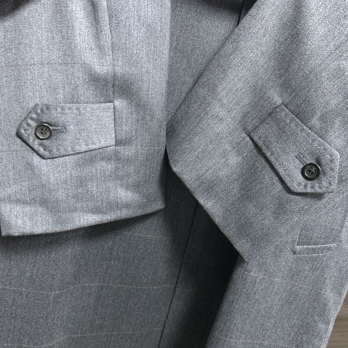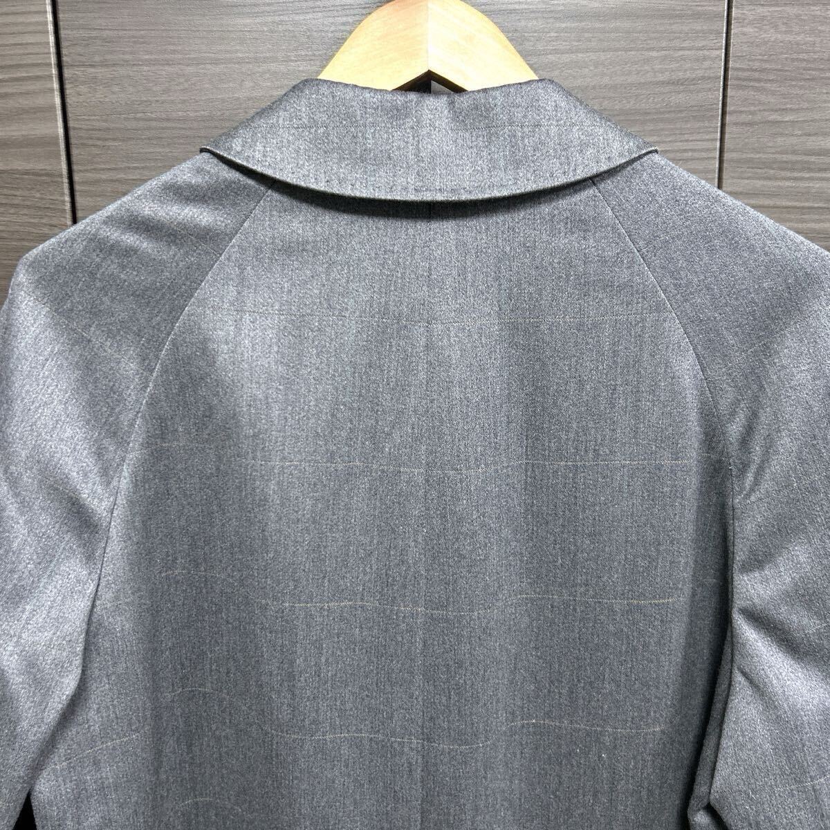 第一ボタン付近や右肘などに薄い汚れがありますが、それほど目立たないです。ネーム刺繍もありますが、外からは見えません。