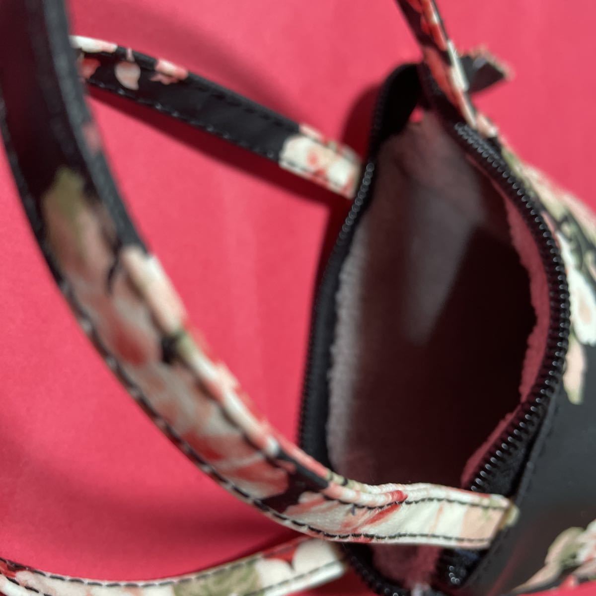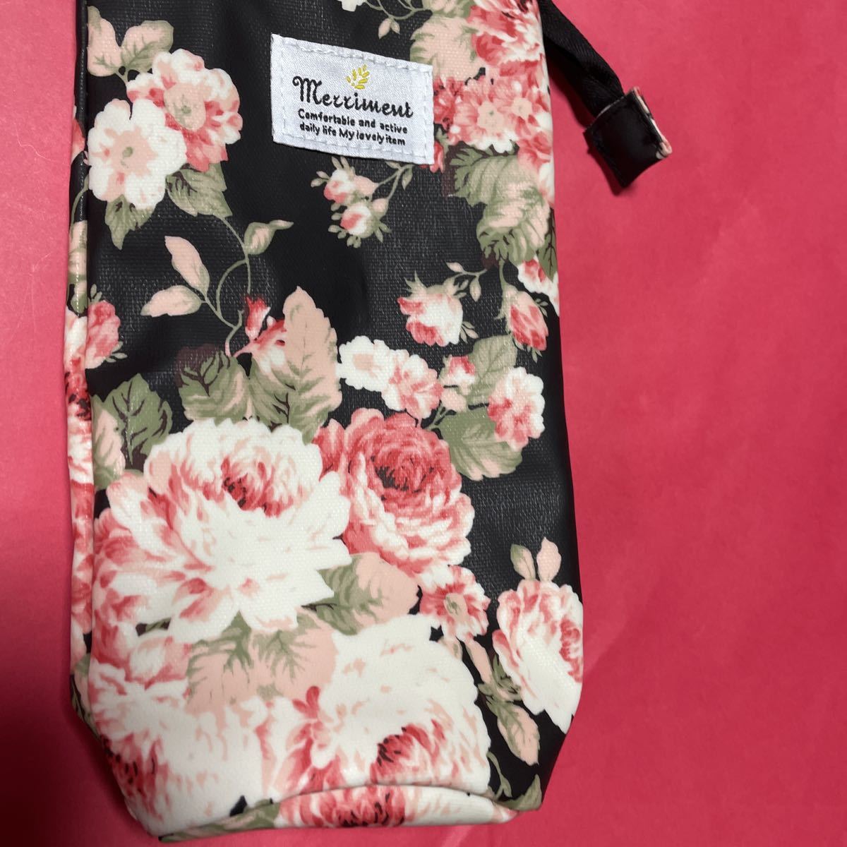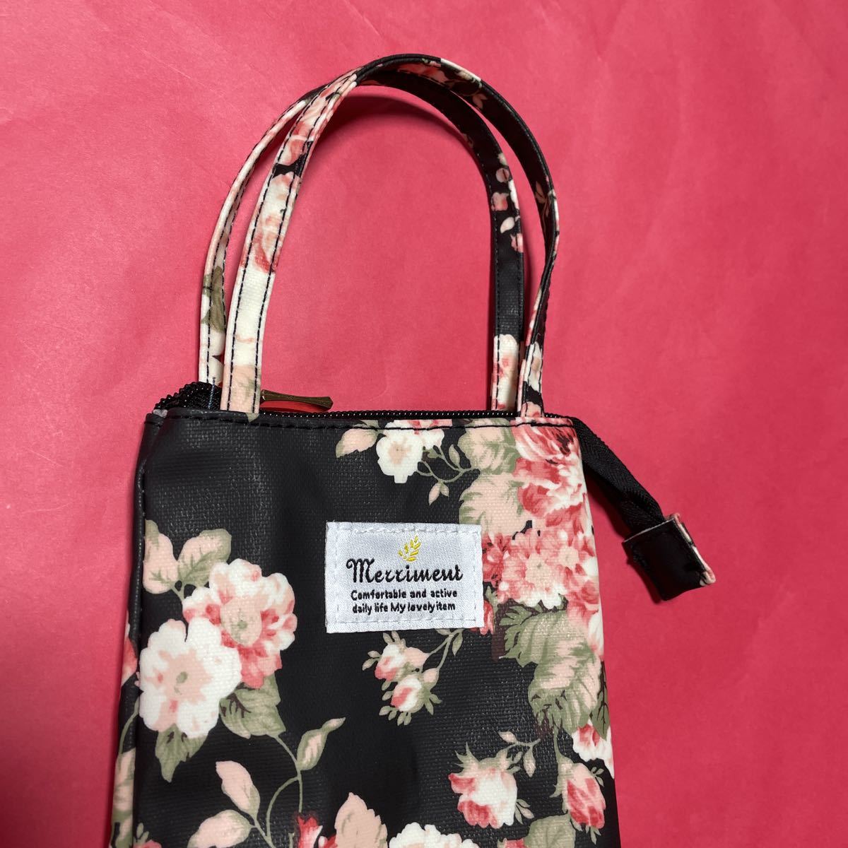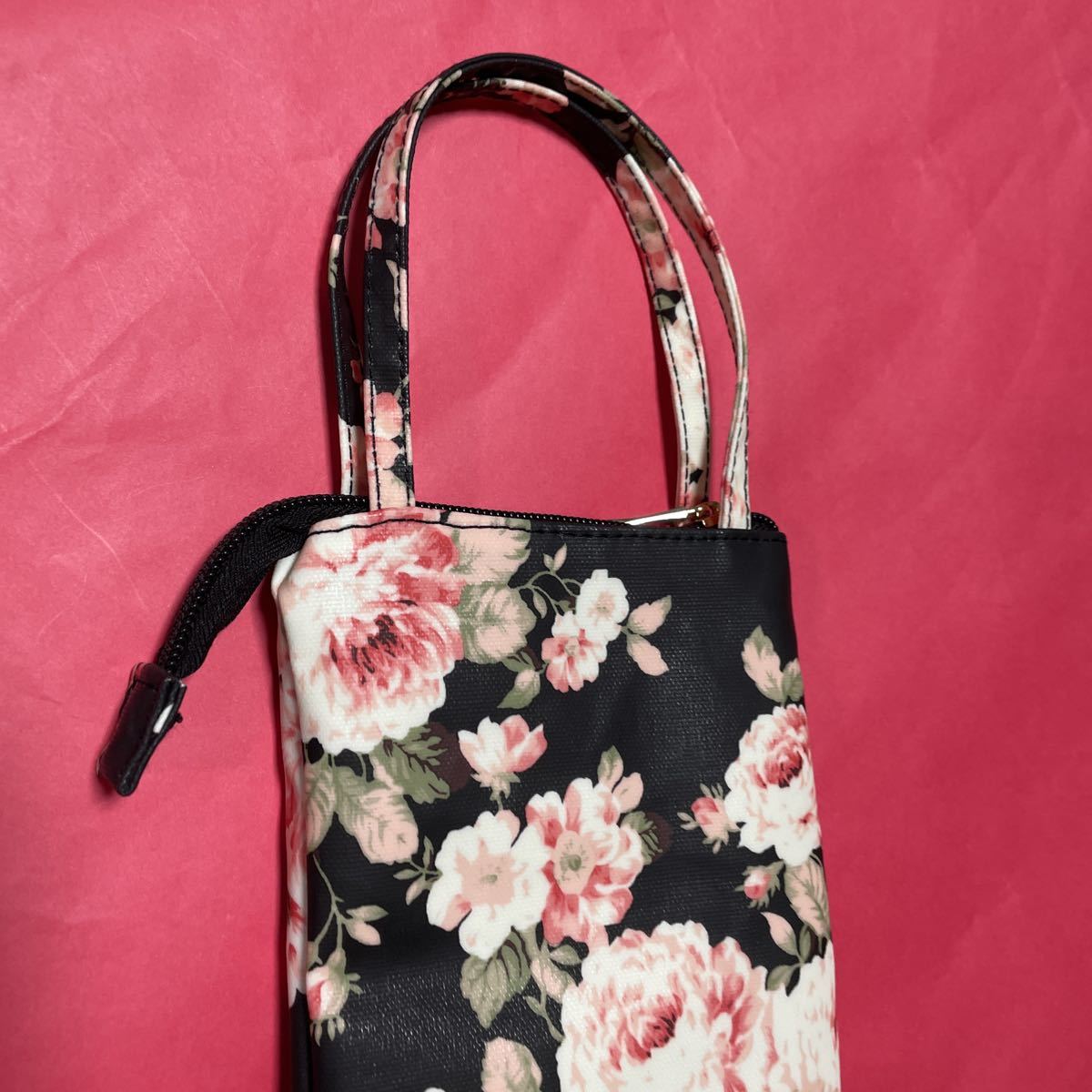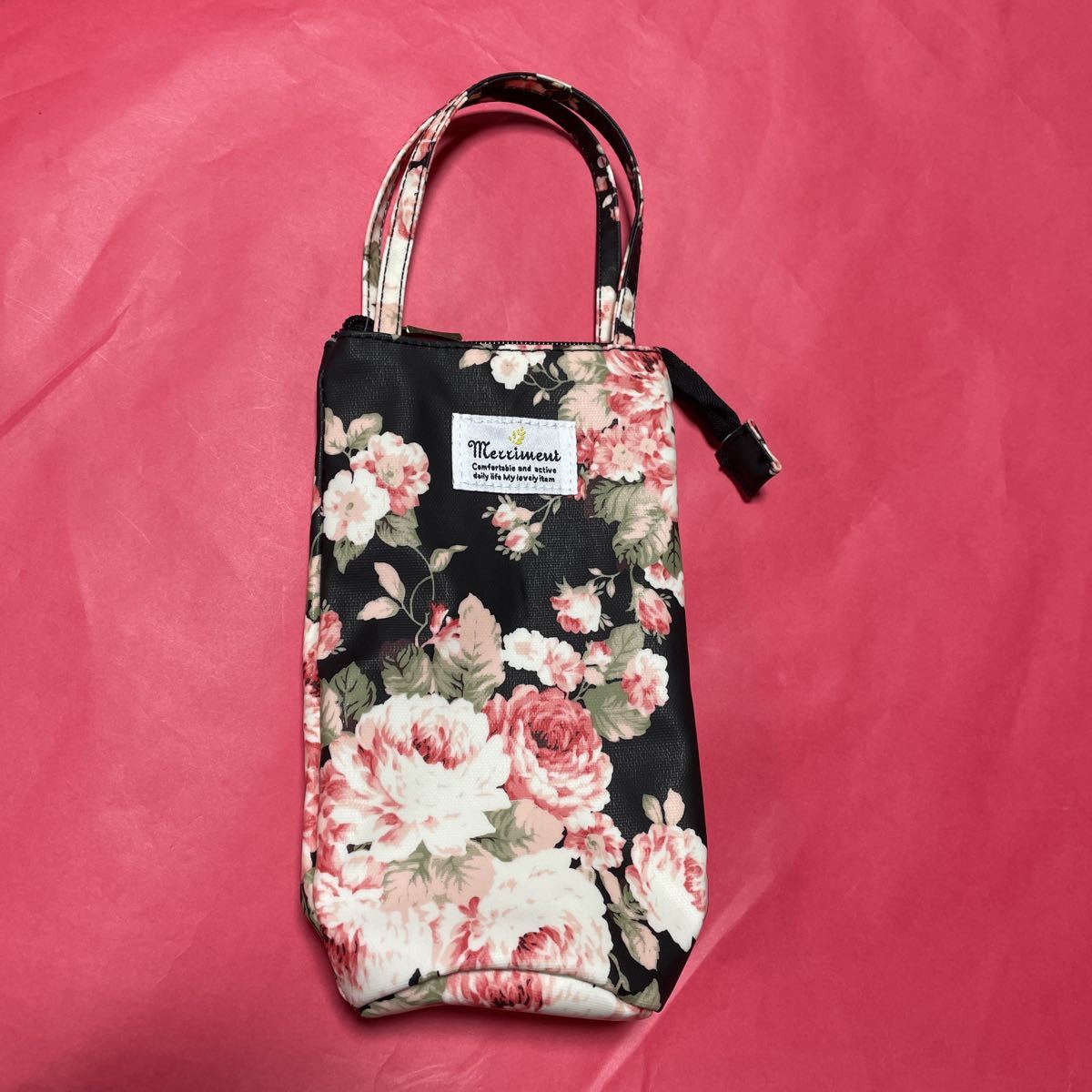 サイズは写真で確認して下さい、ブラックにローズ柄、折り畳み傘、ペットボトルが、入ります