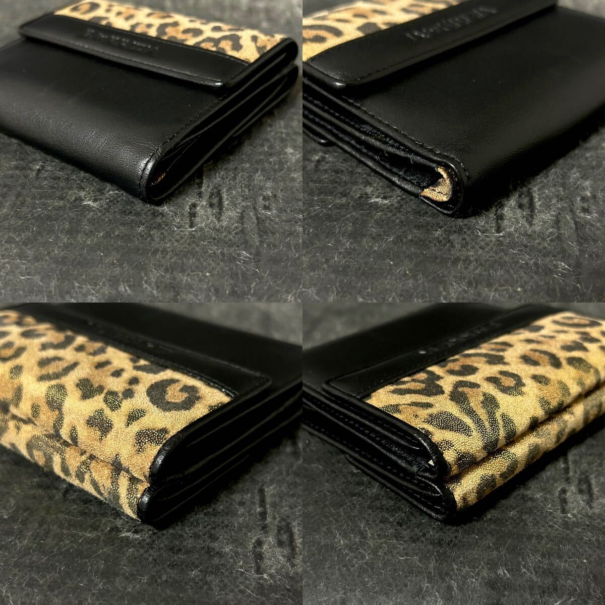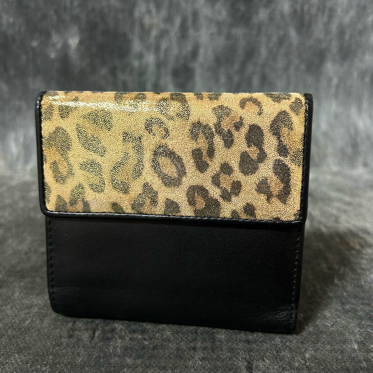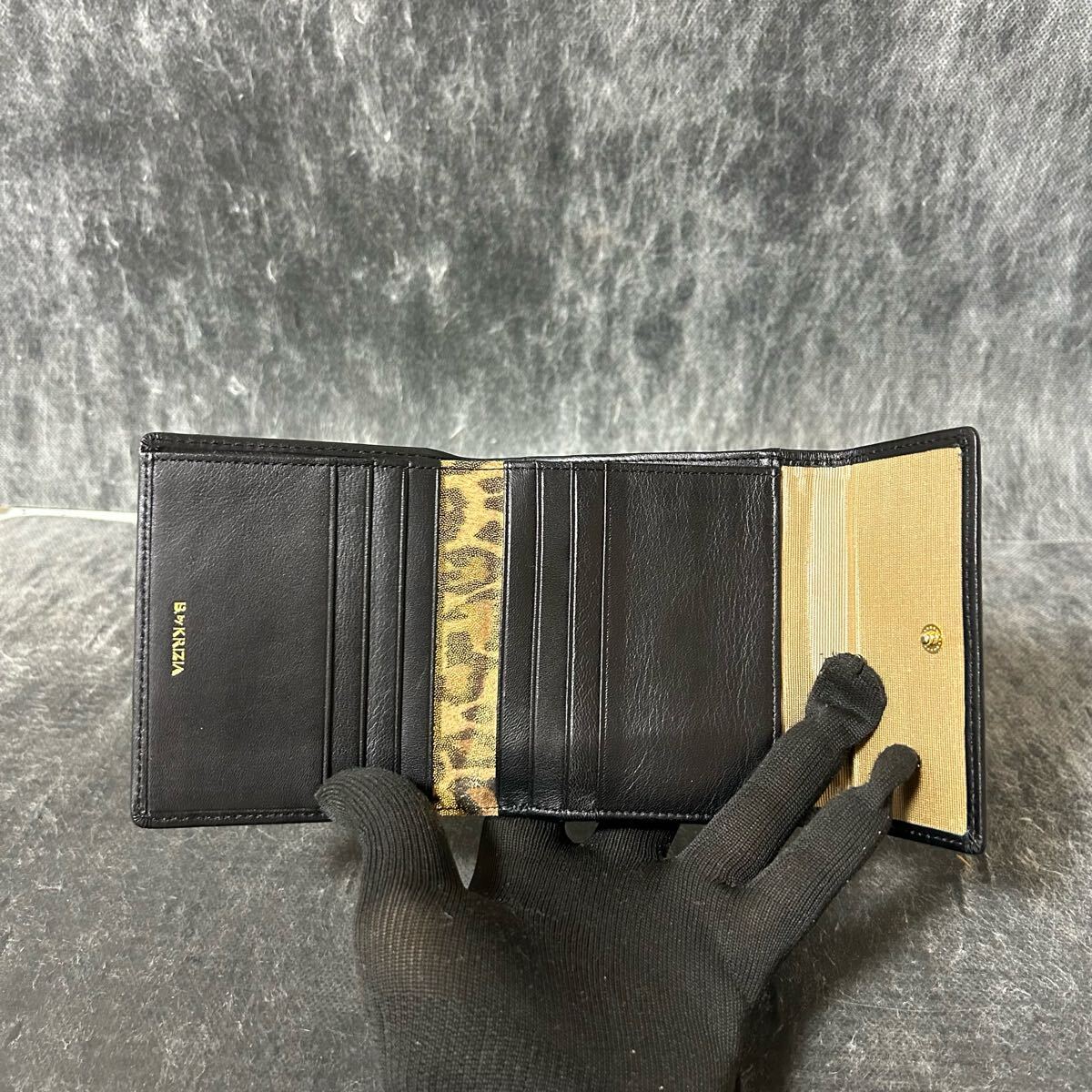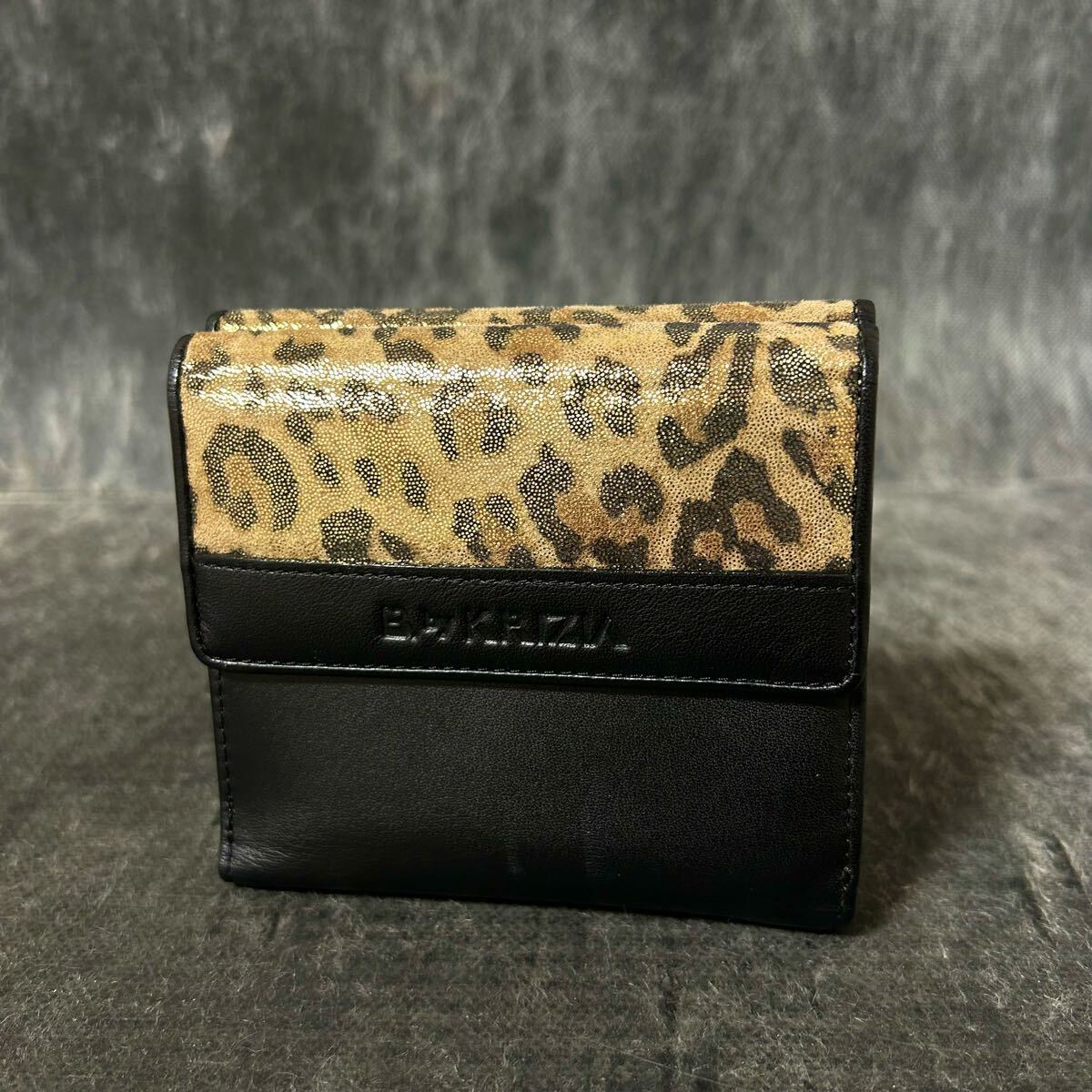 【美品】KRIZIA クリツィア 三つ折り財布 財布 レオパード柄 バイカラー ブラック ブラウン *U