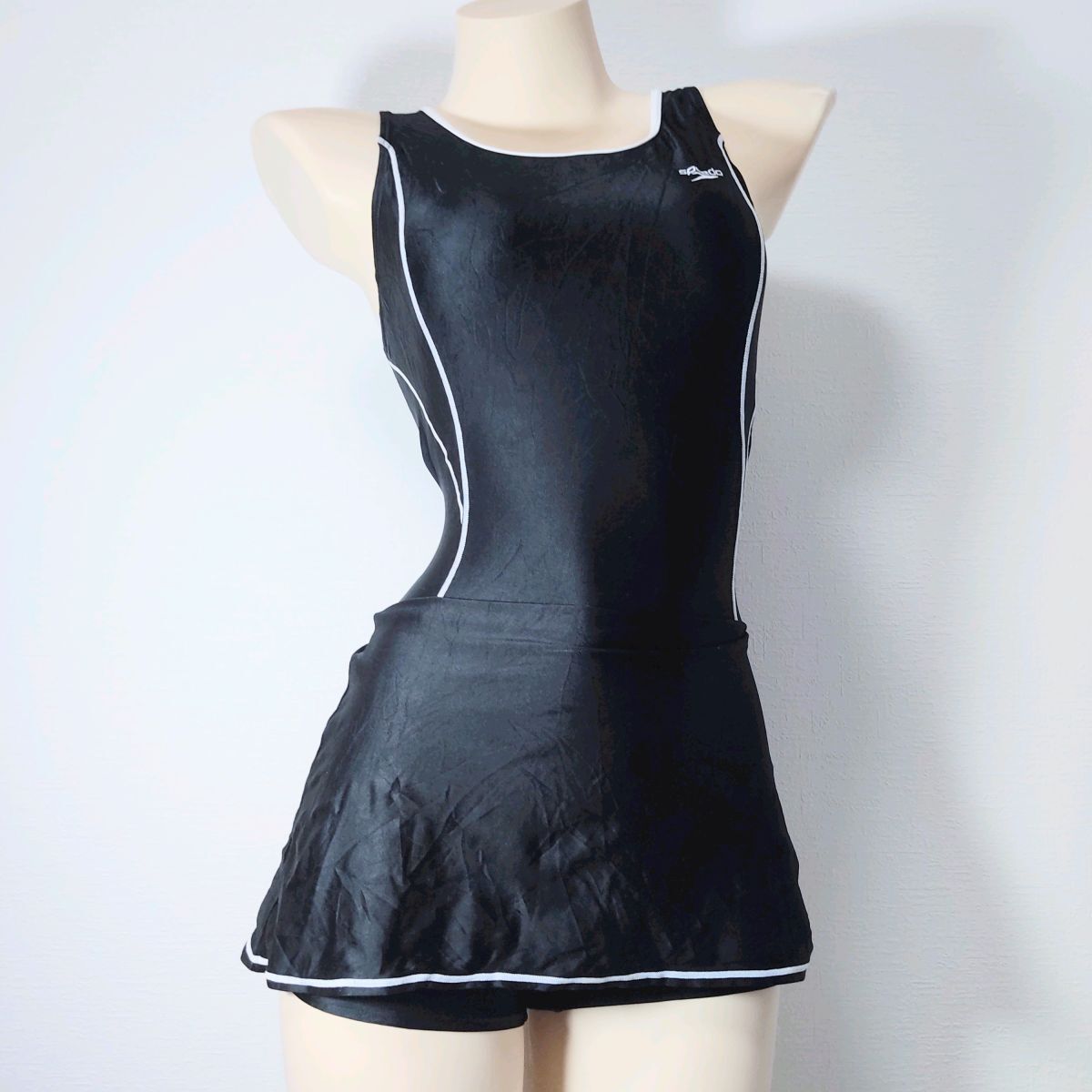 28*スピードSPEEDO女子競泳水着(160L程度)★SD36U21★スカート光沢ブラック黒ホワイト白ライン★伸縮性あり大きいサイズ男性も
