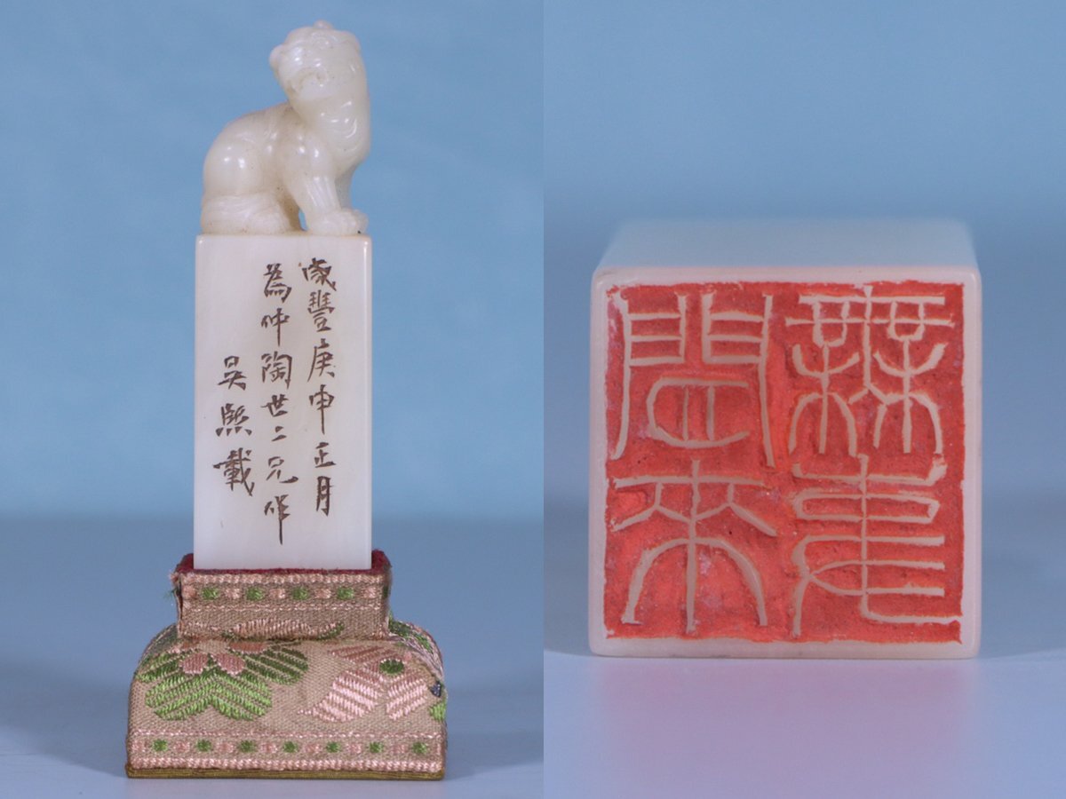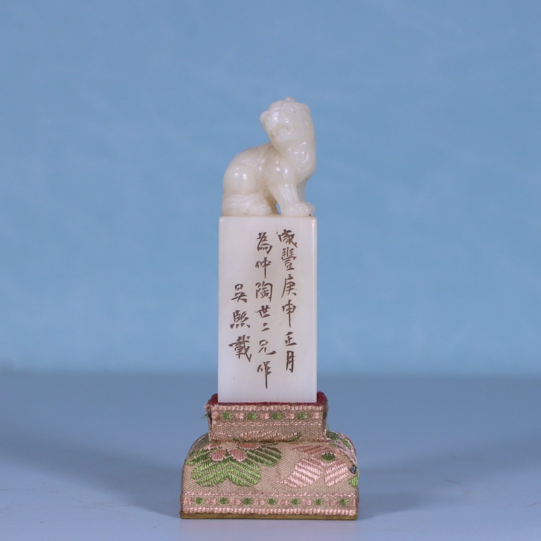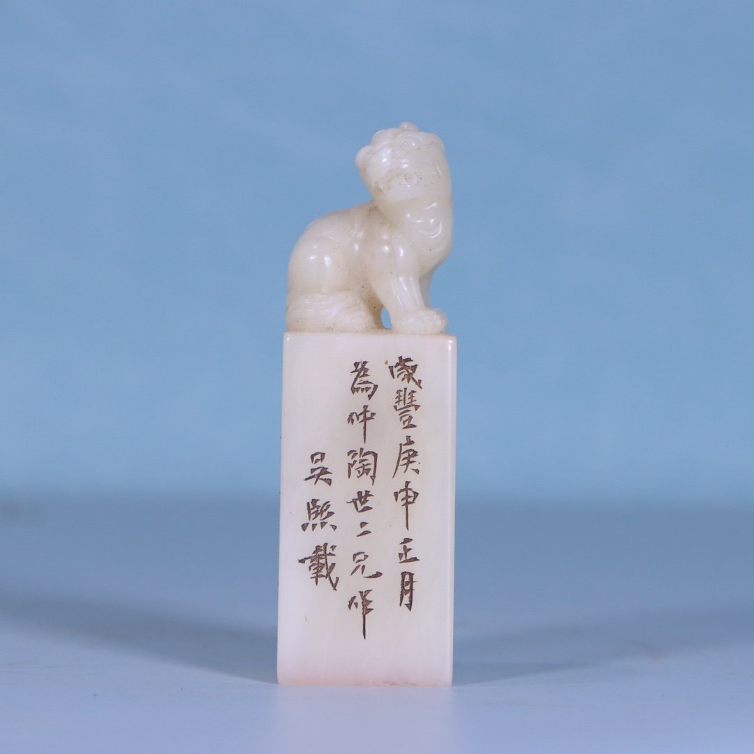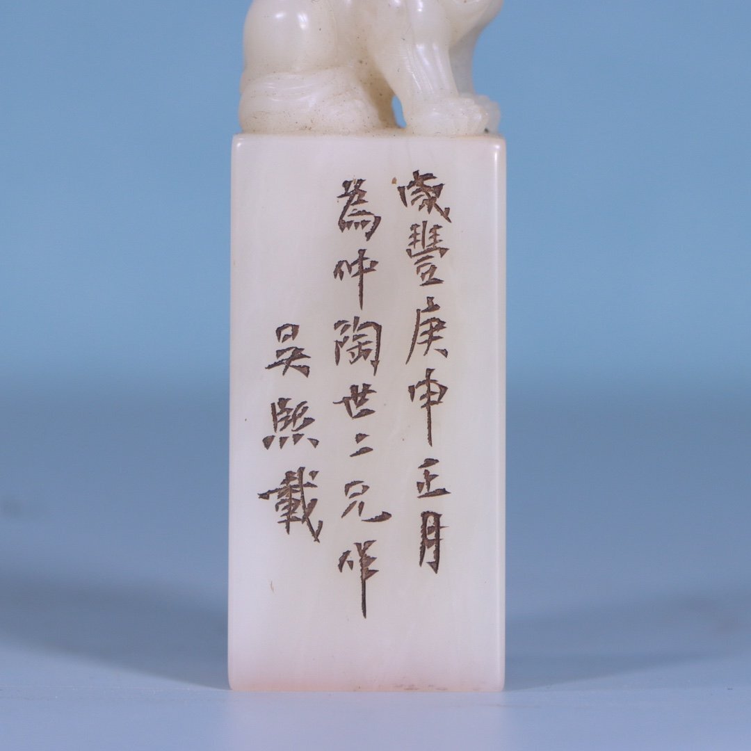 【安】清時代 呉熙載銘 寿山芙蓉石彫 瑞獣鈕印章 印鑑 共箱 極細工 古置物 古擺件 中国古美術 時代物 286 サイズ(約寸) |