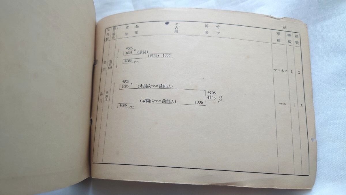 ☆国鉄東京鉄道管理局☆東海道線、御殿場線 旅客列車編成並びに客車運用表☆昭和29年