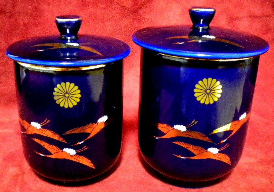 売切 菊紋 レア物 金鶴 夫婦湯呑 蓋付 磁器製 未使用保管品 箱無 大:容量/250cc/本体寸法φ70×H90mm重量175g/蓋寸法φ80×H26mm重量70g、小:容量/200cc/本体寸法φ67×H84mm重量165g/蓋寸法φ74×H24mm重量50g 、 纏購入特典有、金鶴の意味:長寿、夫婦円満、又願いが天に届くなど、縁起の良い象徴です。未使用品ですが長期保管品です。了解して購入される方へ。・纏め購入特典:2点以上(他の商品可)纏めて購入頂ける場合、オークション出品の場合、ご希望の商品にご入札いただければ早期終了させて頂きます。質問からか、すでに御落札頂いている場合は取引連絡からご連絡ください。ご連絡頂き24時間以内のご入札が対象となります。表示金額で購入が出来、終了時間までの時間短縮になります。是非ご利用ください。・検品の為にぬるま湯で洗浄後、乾燥を行い個別ラップを行っております。できる限り良好な状態でお手元に届くよう努めております。・発送は郵パックで御願いいたします。御住所確認後、送料を御連絡させていただきます。まとめ購入の場合、ご予定を取引ナビでご連絡いただければ、お取り置き後、同梱発送いたしますので宜しくお願いいたします。分類121F19 №0567