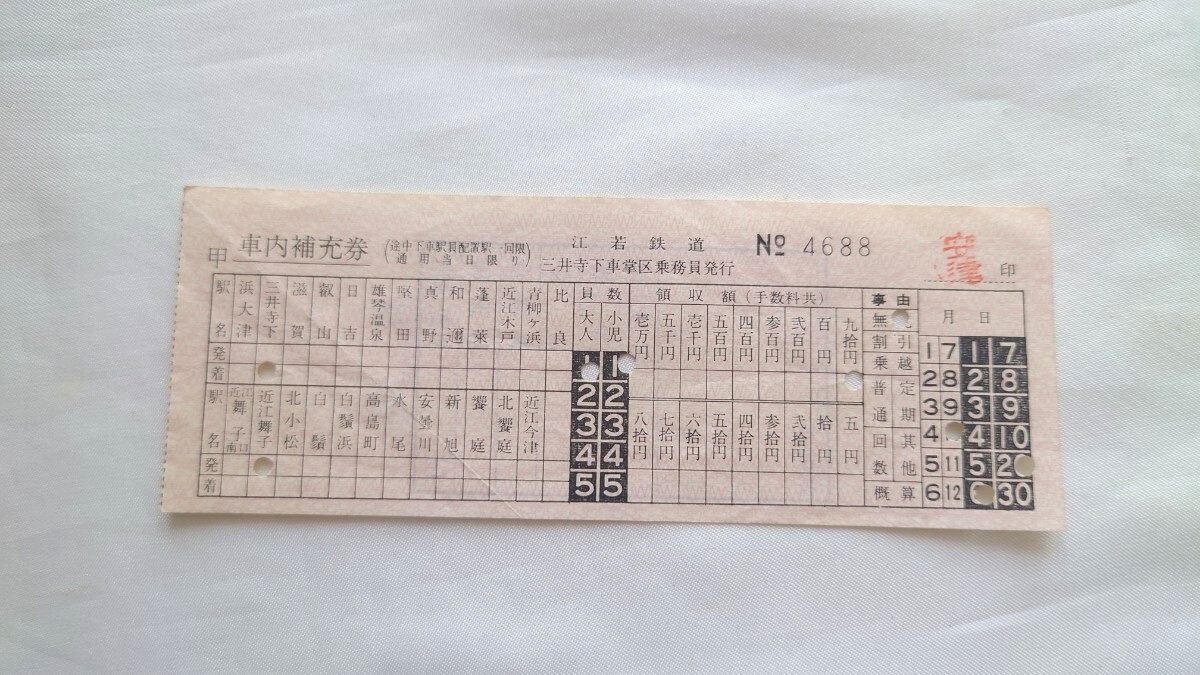 ☆江若鉄道☆車内補充券☆軟券 車内乗車券