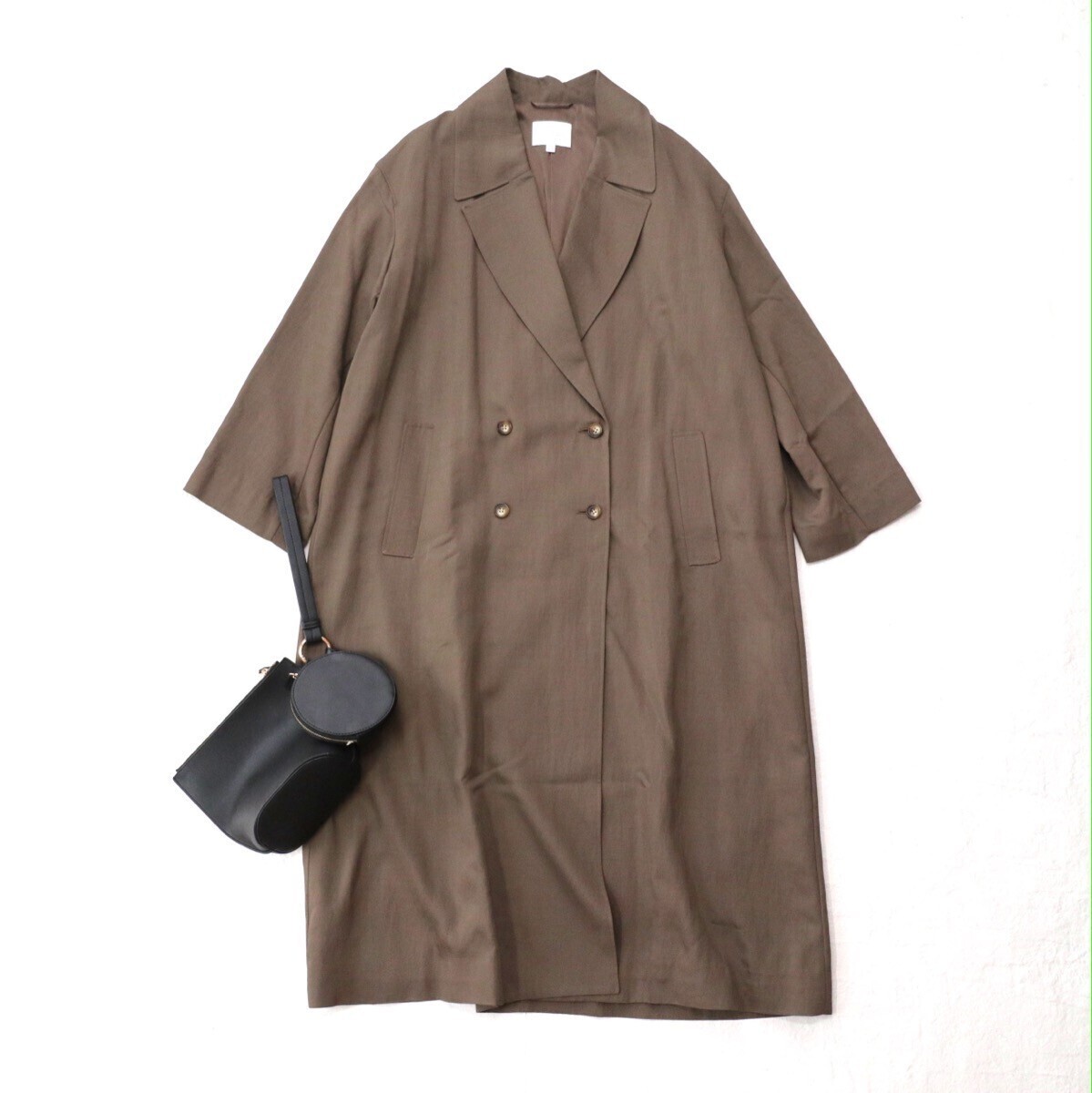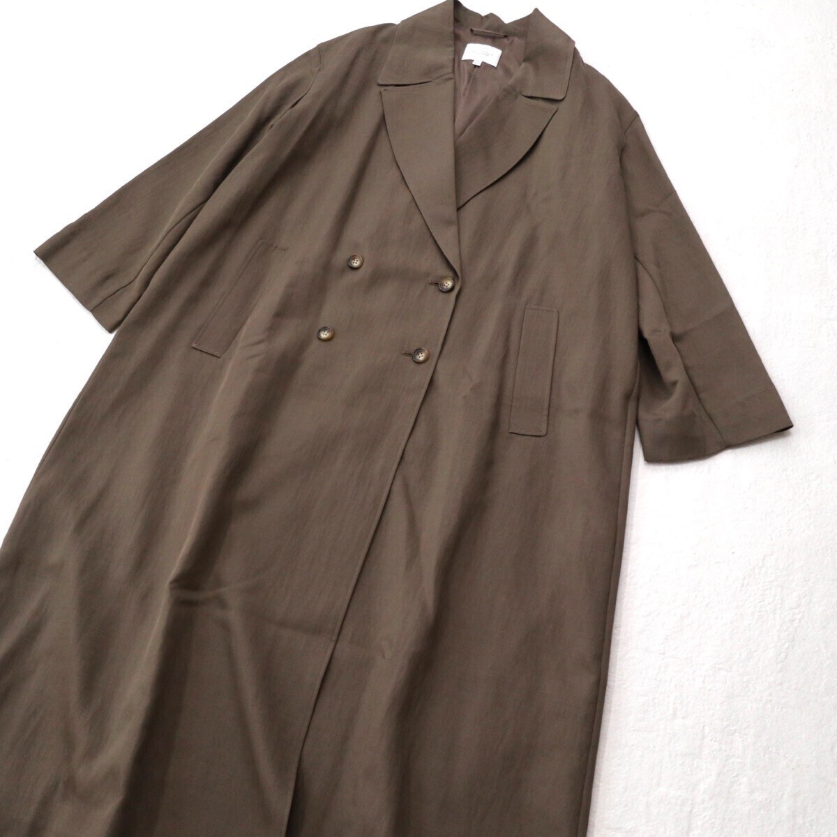 微光沢のツイル素材のゆったりシルエットのコートです。