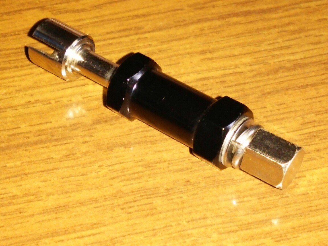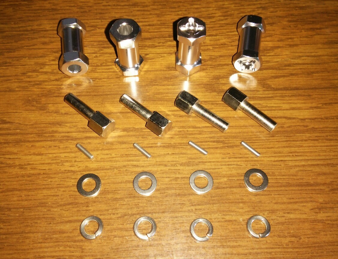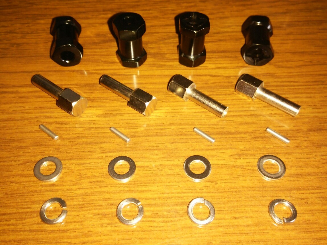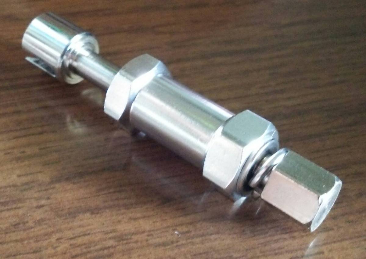 六角対辺12㎜の内ねじ特殊ボルト(チューブナット)固定式1/10標準アクスル汎用ワイドハブ正規品のボルト(ナット)首下=胴体長は、+15㎜のワイドハブなら15㎜、+20㎜なら20㎜、つまり、+ワイド長=ボルト(ナット)首下長が基準で、アクスルシャフトねじ有効長9㎜~という非常に限られた範囲でスプリングワッシャ収縮(約3→1.5㎜)も含めた全ての取り付け動作に確実に対応して、かつ十分な強度を保つ為には、上記プラスマイナス1㎜(+15㎜は14~16㎜、+20㎜は19~21㎜)が正常に取り付けられる許容範囲です。