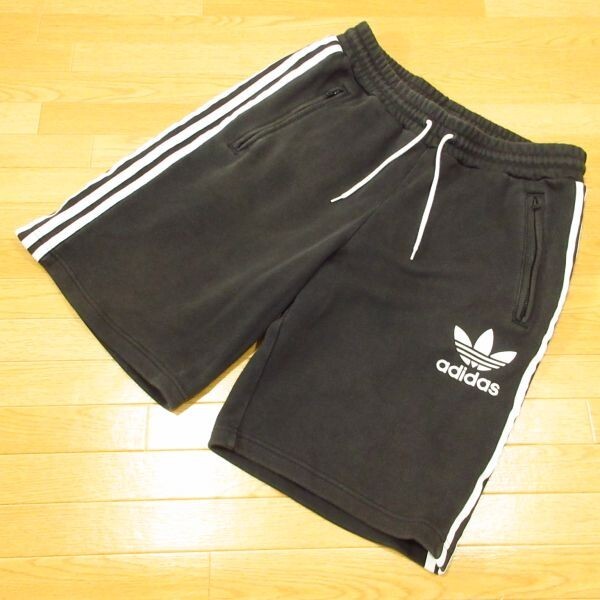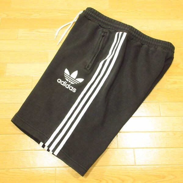 ◎adidas Originals アディダス オリジナルス スウェット ハーフパンツ 三つ葉 裏起毛 トレフォイル メンズ 黒 ブラック XLサイズ◆PA3970