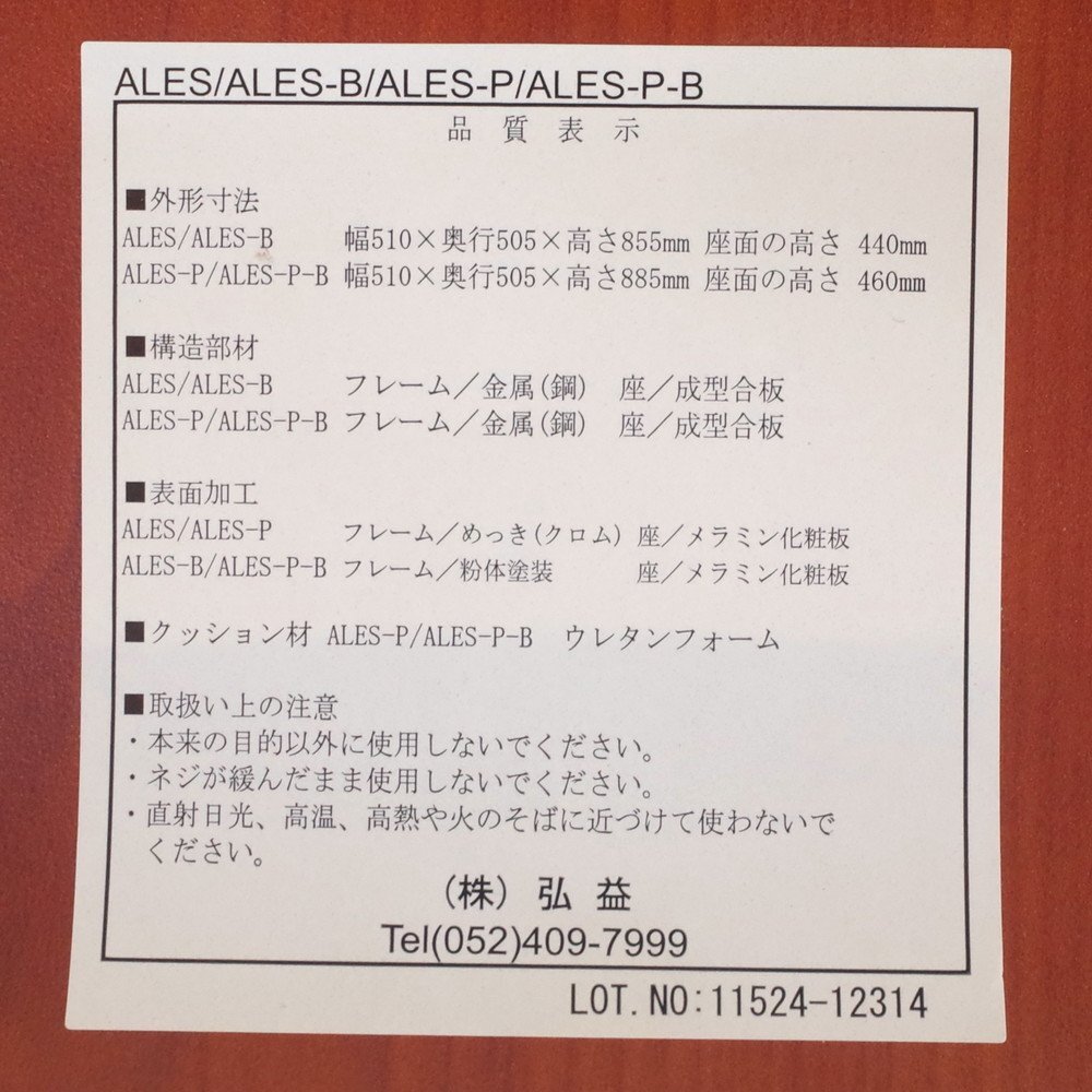 本体サイズ | 幅510mm 奥行500mm 高さ850mm 座面の高さ460mm |