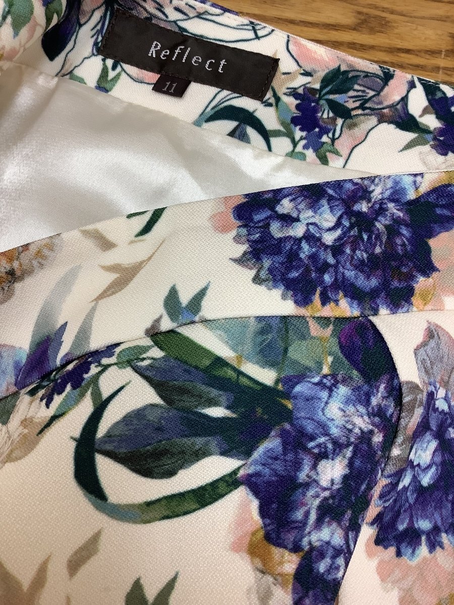 | リフレクト (Reflect) ベージュ×青紫やピンクなど花柄スカート 【表示サイズ】 11 【平置き実寸】 ウエスト幅 35cmほど ヒップ幅 54cmほど 丈 59cmほど 【季節感】春秋向け 【状態その他】 目立った傷や汚れなし ・ポケットはありません ・ストレッチ性のある生地です ・ウエストゴム無し 当店管理番号:10^141249 |