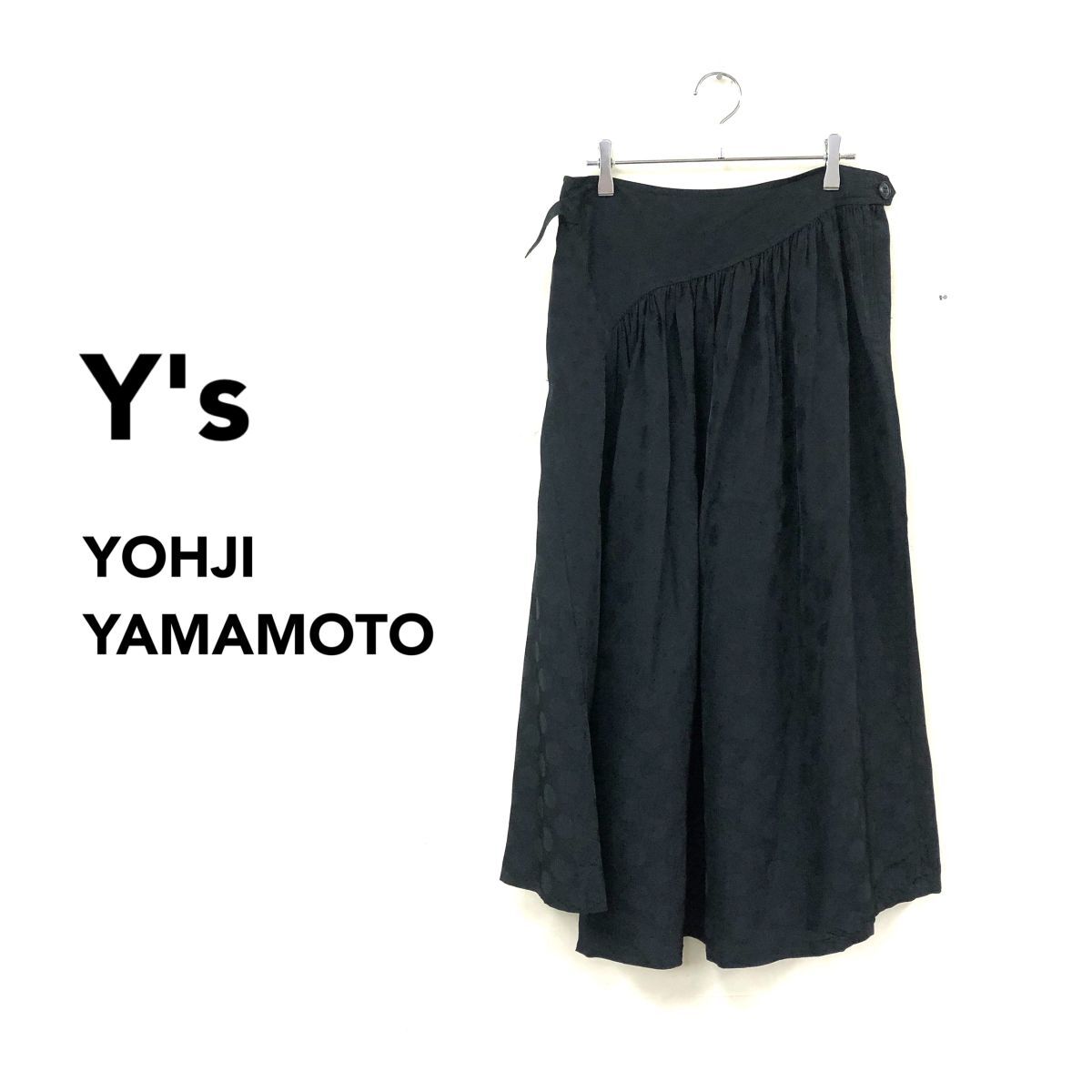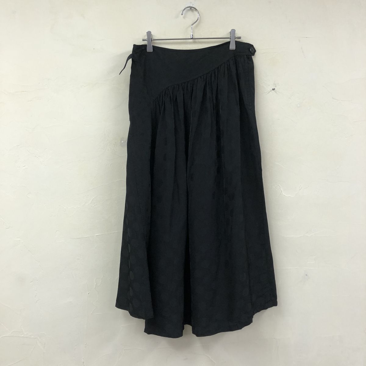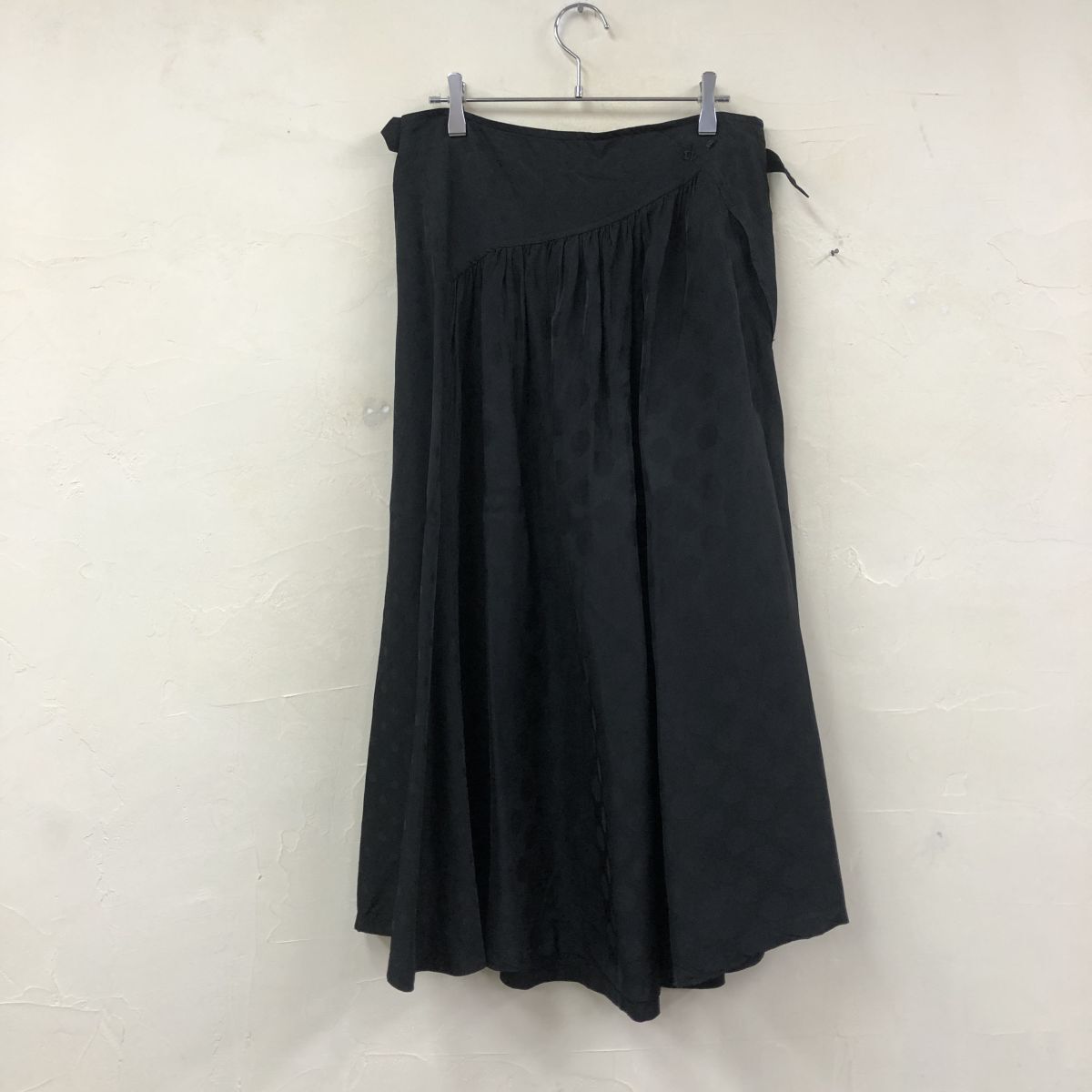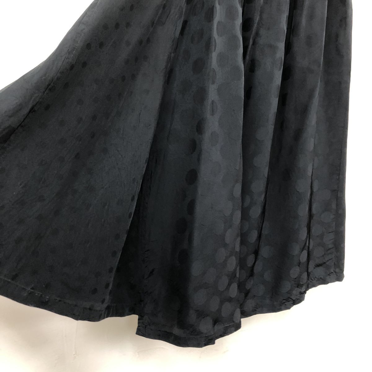 2K2906-G◆ Y's ワイズ ヨウジヤマモト ドットフレアロングスカート 総柄 ギャザー 微光沢 裏地なし 薄手 ファスナー ◆ 黒 キャプラ