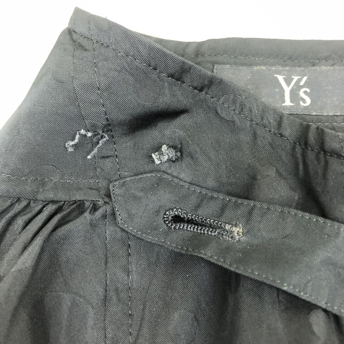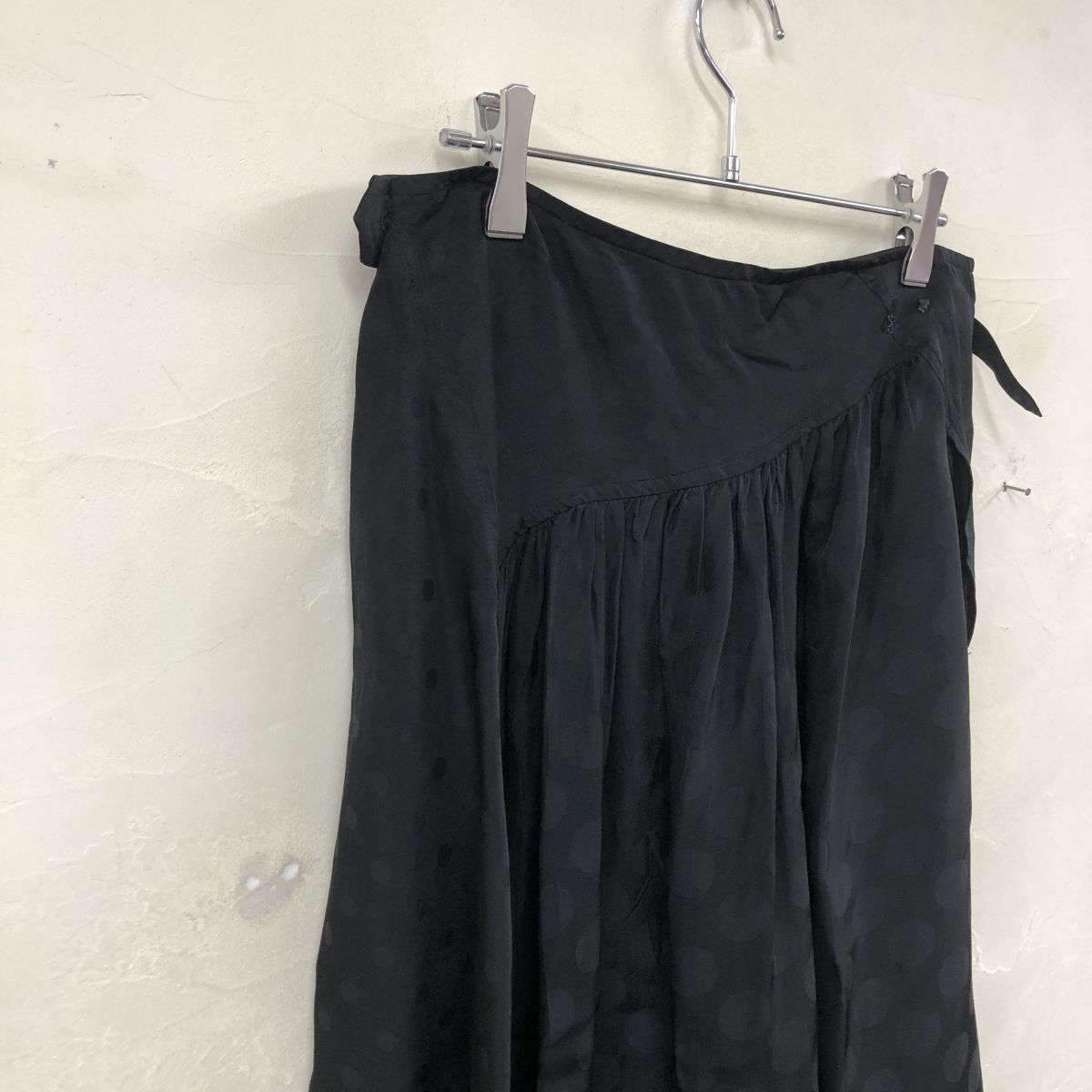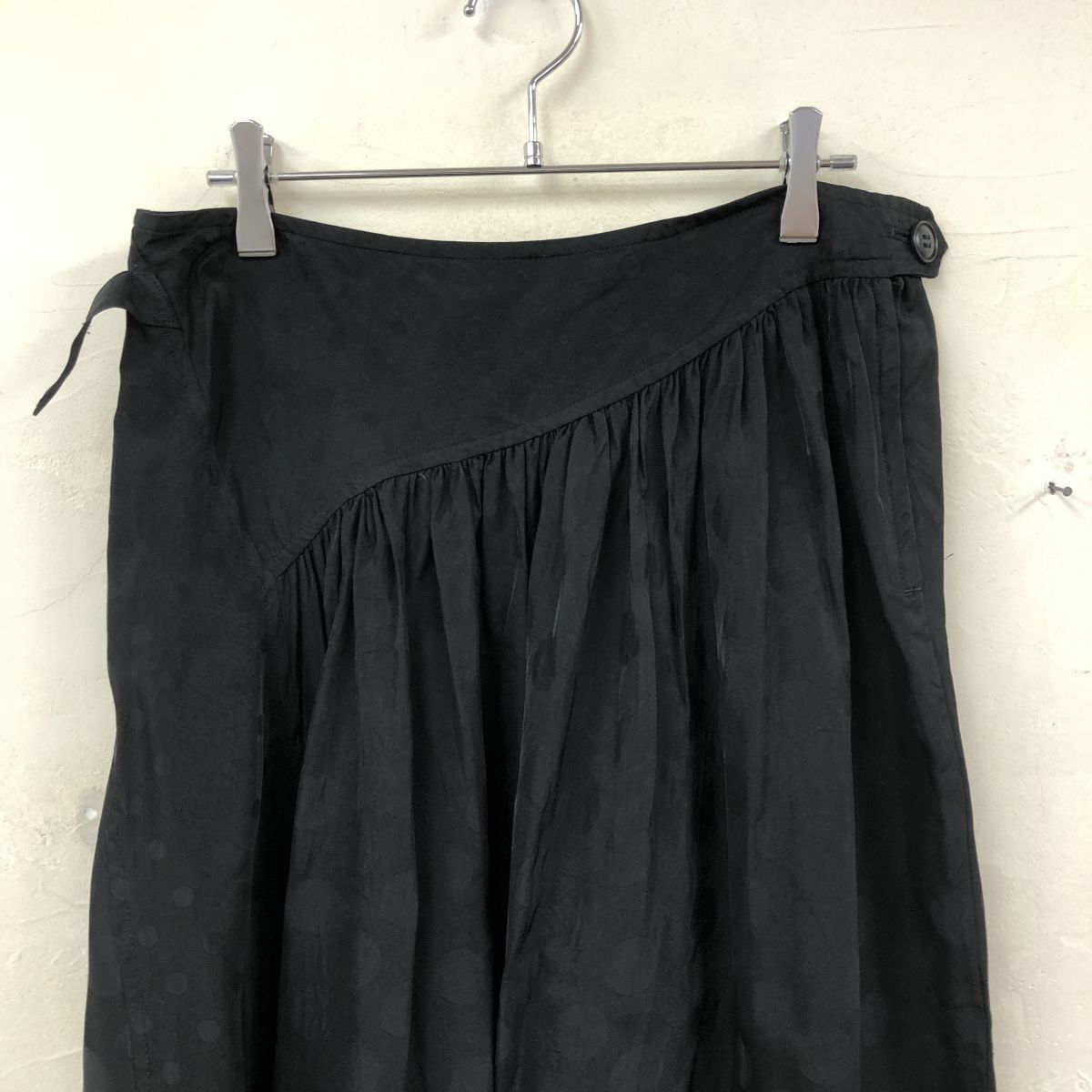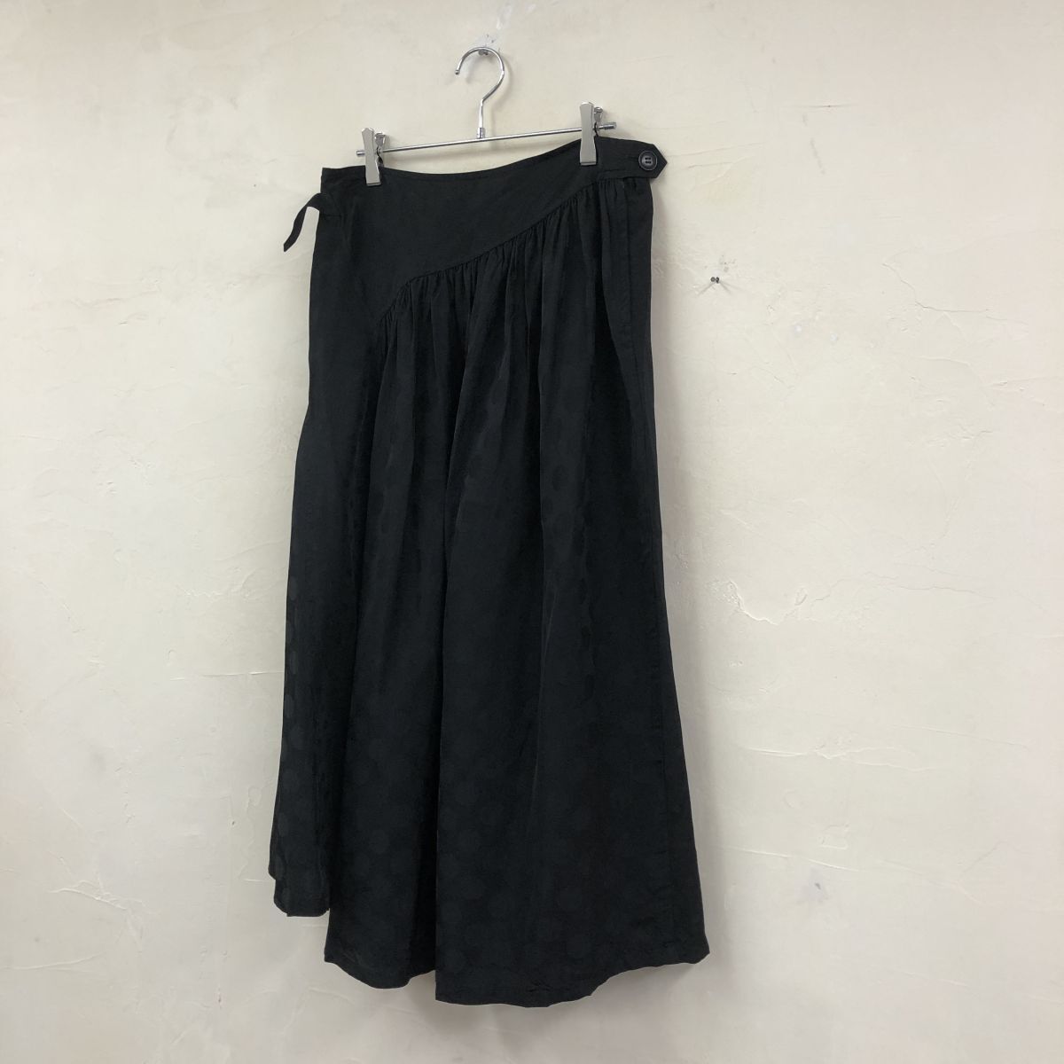 2K2906-G◆ Y's ワイズ ヨウジヤマモト ドットフレアロングスカート 総柄 ギャザー 微光沢 裏地なし 薄手 ファスナー ◆ 黒 キャプラ
