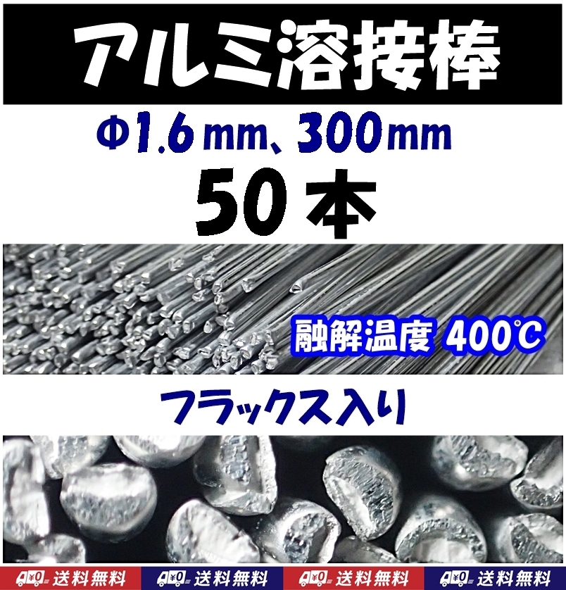 【送料無料】アルミ溶接棒 50本 Φ1.6 長さ30cm フラックス入 溶融温度400℃  即決 半田 はんだ用品