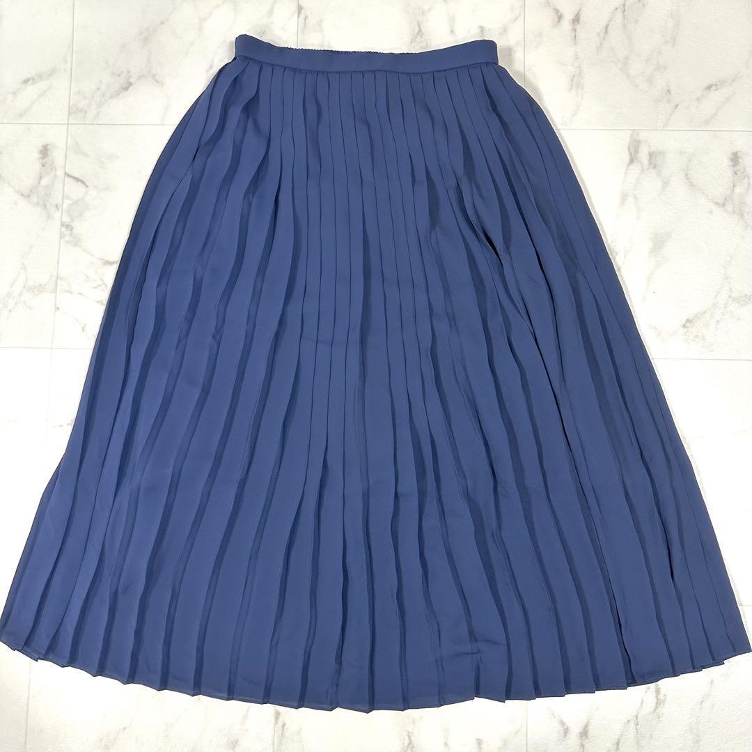 ・UNIQLO製のネイビープリーツスカートで動きのある女性らしいシルエット