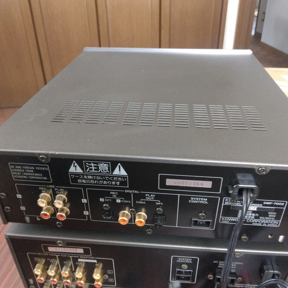 出品にあたり動作確認しました。アンプの状態、CD、MD入力での音出し、問題ありませんでした。また、リモコンでの電源、入、切、ボリュームコントロール問題ありませんでしたが、セレクトコントロール切替できませんでした。本体のボタン、つまみでのコントロールは全て問題ありません。CDの状態、トレイ開閉もスムーズで動作良好です。各ボタンも問題なく機能しました。MDの状態、ディスクを入れるとモニターが表示されますが、しばらくすると、エラーが表示されます。ディスクの出し入れは問題ありません。感覚的にもう少し奥まで、入らなければならないような気がします。したがって、調整等の修理が必要です。